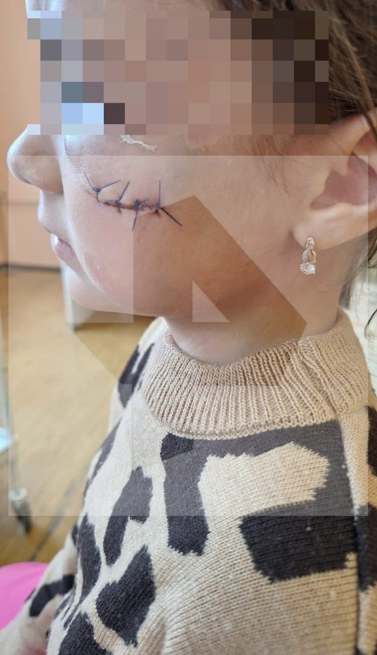 По словам матери, девочка находилась в "слепой зоне", когда другой ребёнок качнулся на качелях и сбил её спиной. Ребёнок ударился лицом и получил глубокую рану щеки — родители сразу повезли её в больницу, где девочке наложили швы.