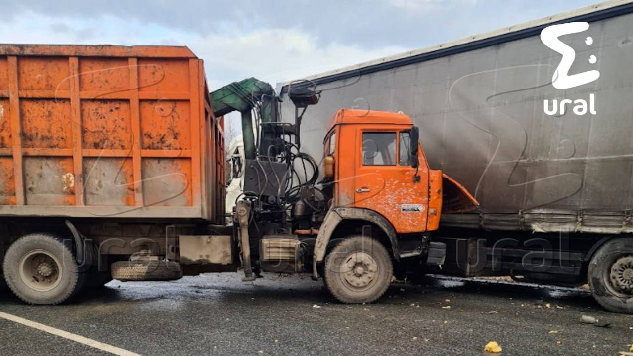 Там из-за гололёда столкнулись шесть грузовиков. Ограничения ввели примерно на 14 километрах дороги.Подписывайся на Ural Mash