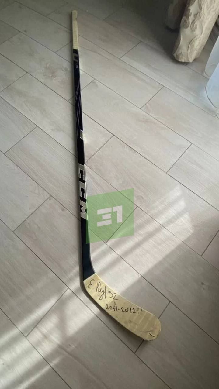 Этой клюшкой Кузя играл в сезоне 2011/12 перед своим отъездом в НХЛ. На ручке красуется фамилия звёздного игрока, а на крюке остался автограф.