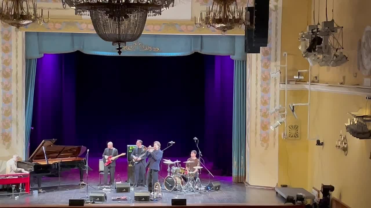 Трубач Вадим Эйленкриг и его коллектив исполнили легендарную композицию Александры Пахмутовой на сцене челябинского концертного зала имени Прокофьева.