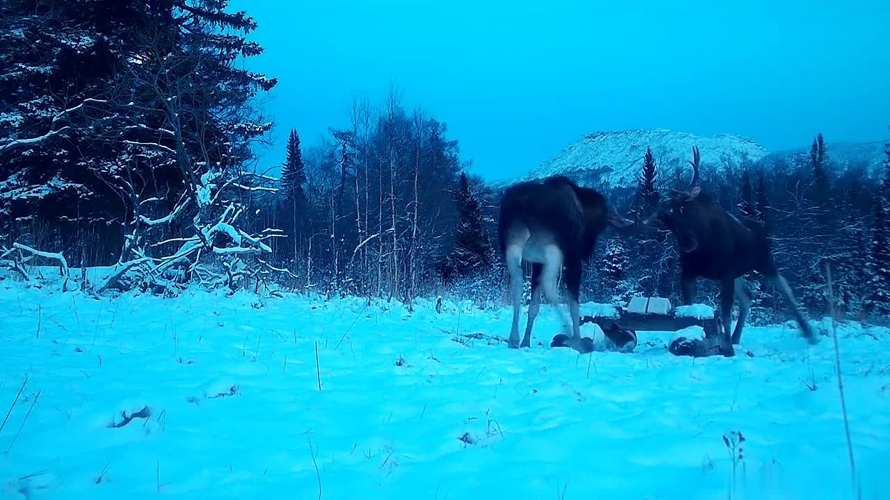 Таганайский лось-задира получил урок вежливости от старшего сородича