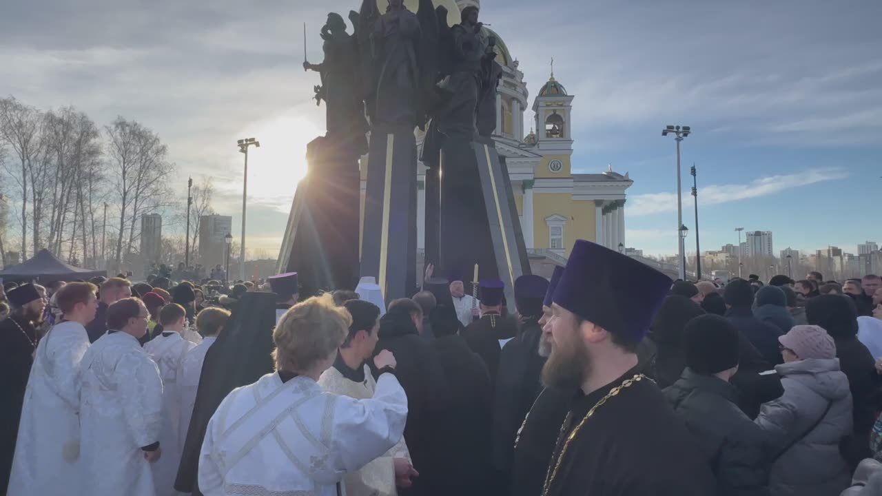 Митрополит Челябинский и Миасский Алексий освящает 17-метровый монумент.