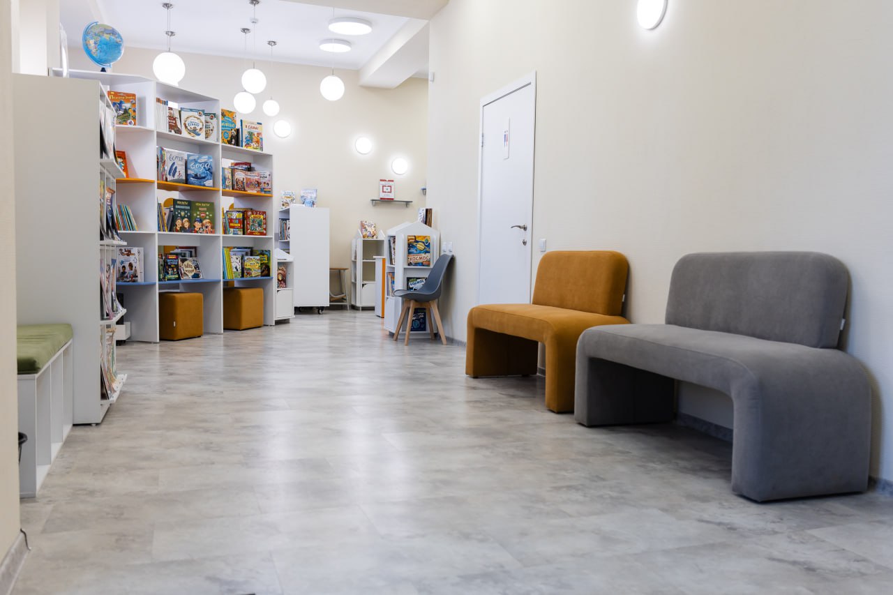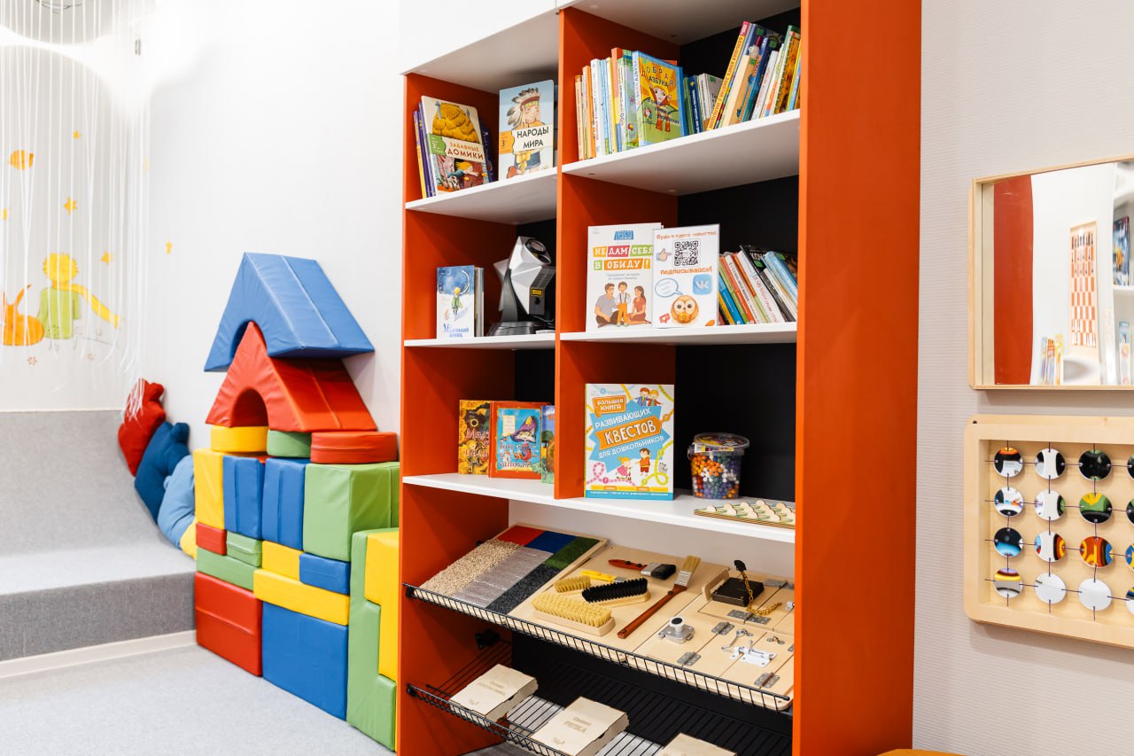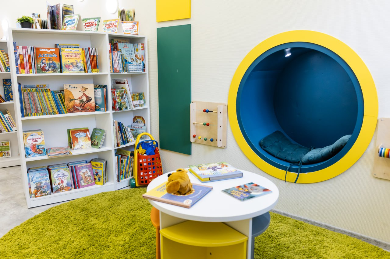 После перепланировки в библиотеке появились залы-трансформеры для детей разного возраста, игровая зона для малышей и площадка для мастер-классов, а также сенсорная комната.
