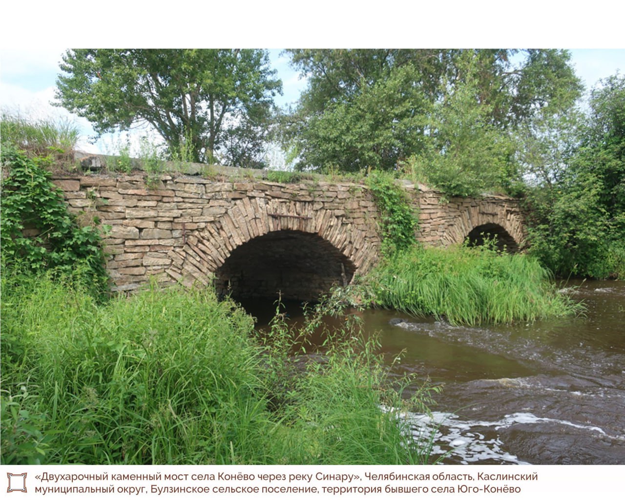 Двухарочный каменный мост села Конёво через реку Синару в ноябре текущего года внесён в Госреестр как объект культурного наследия регионального значения.