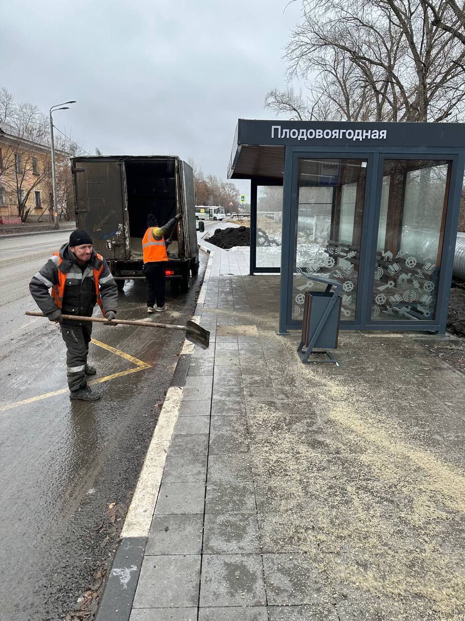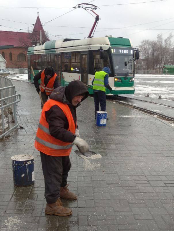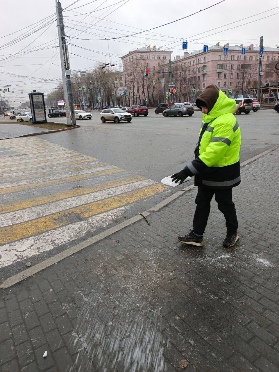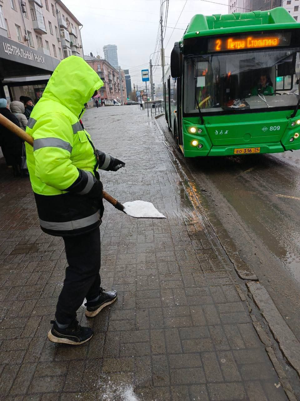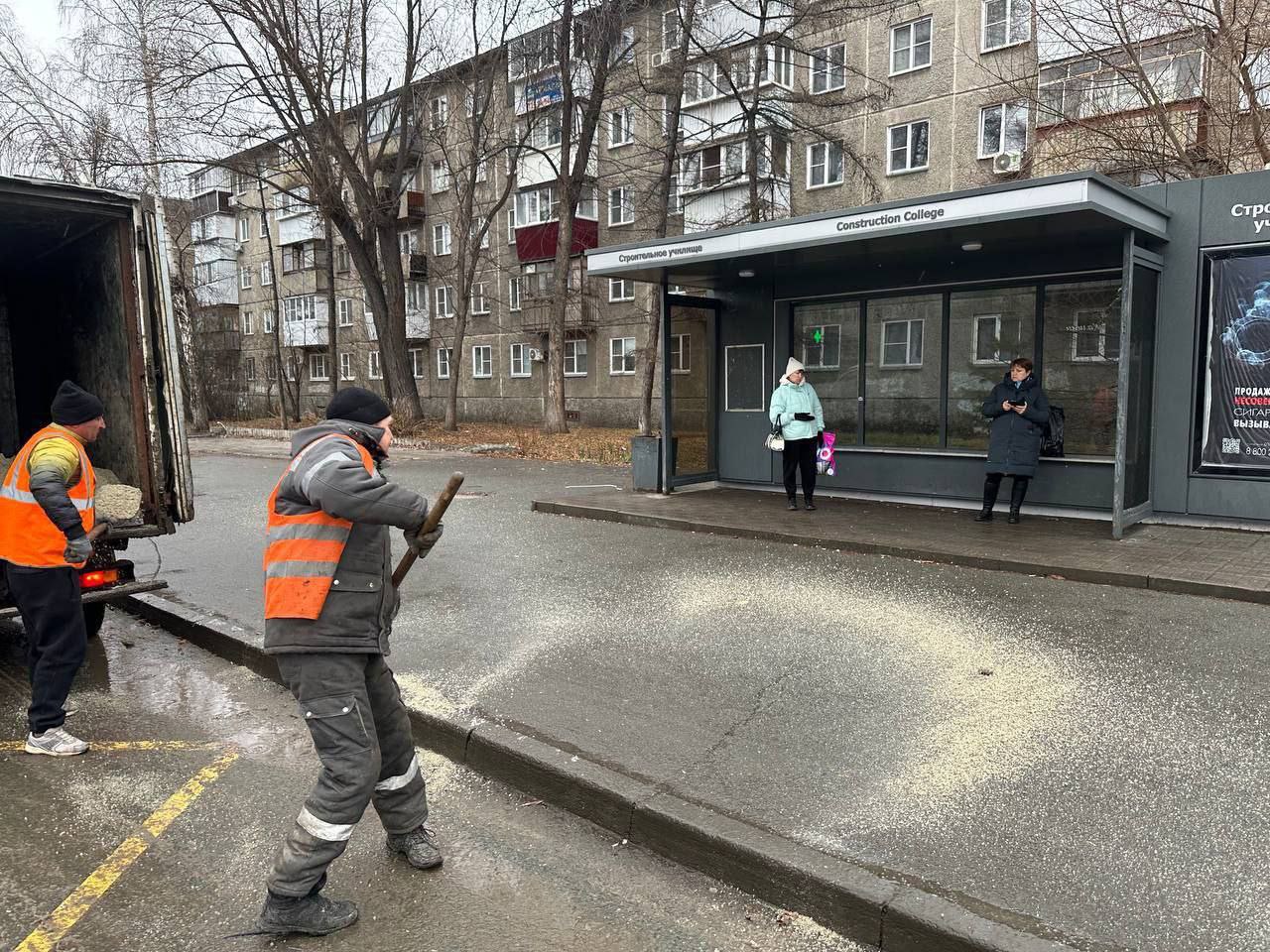 Дорожники и дворники продолжают устранять последствия ледяного дождя в городе. Задействованы все службы.
