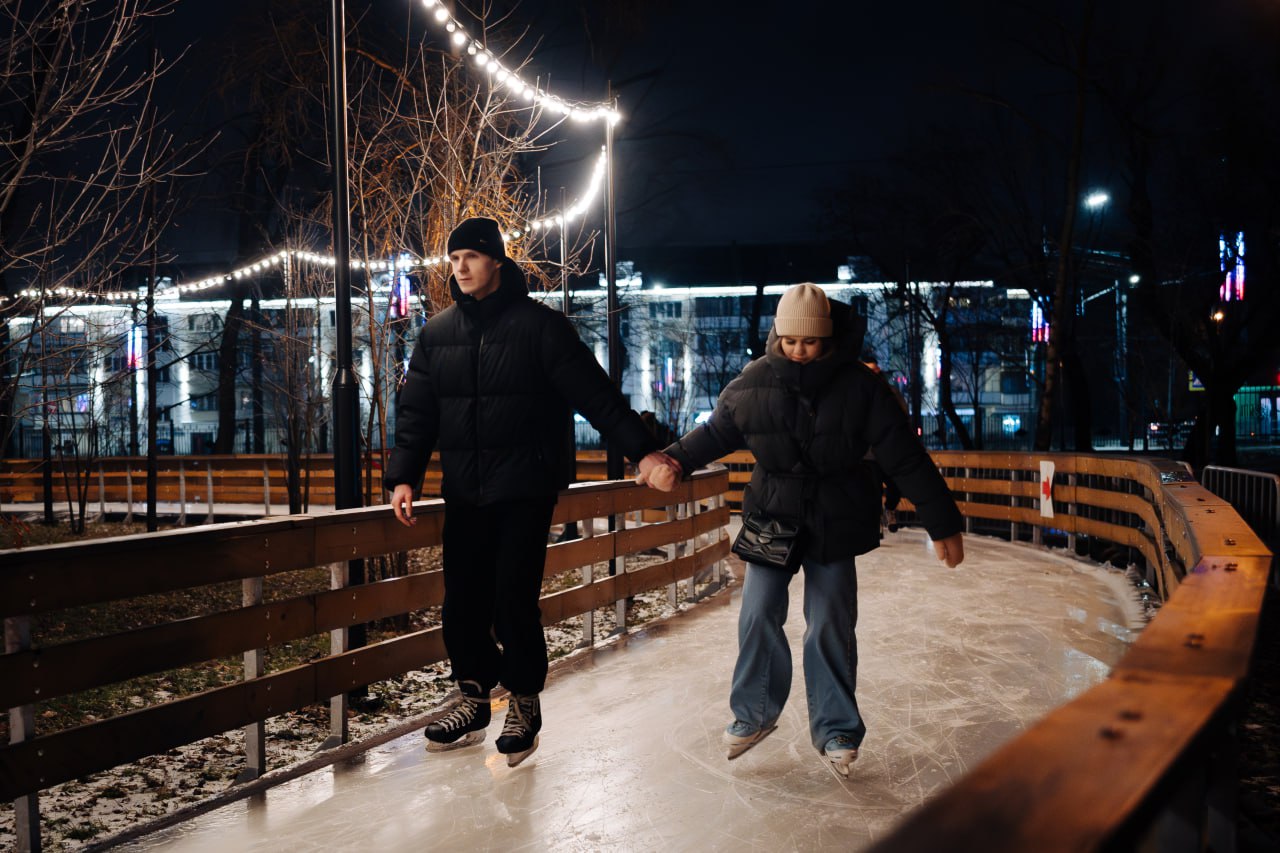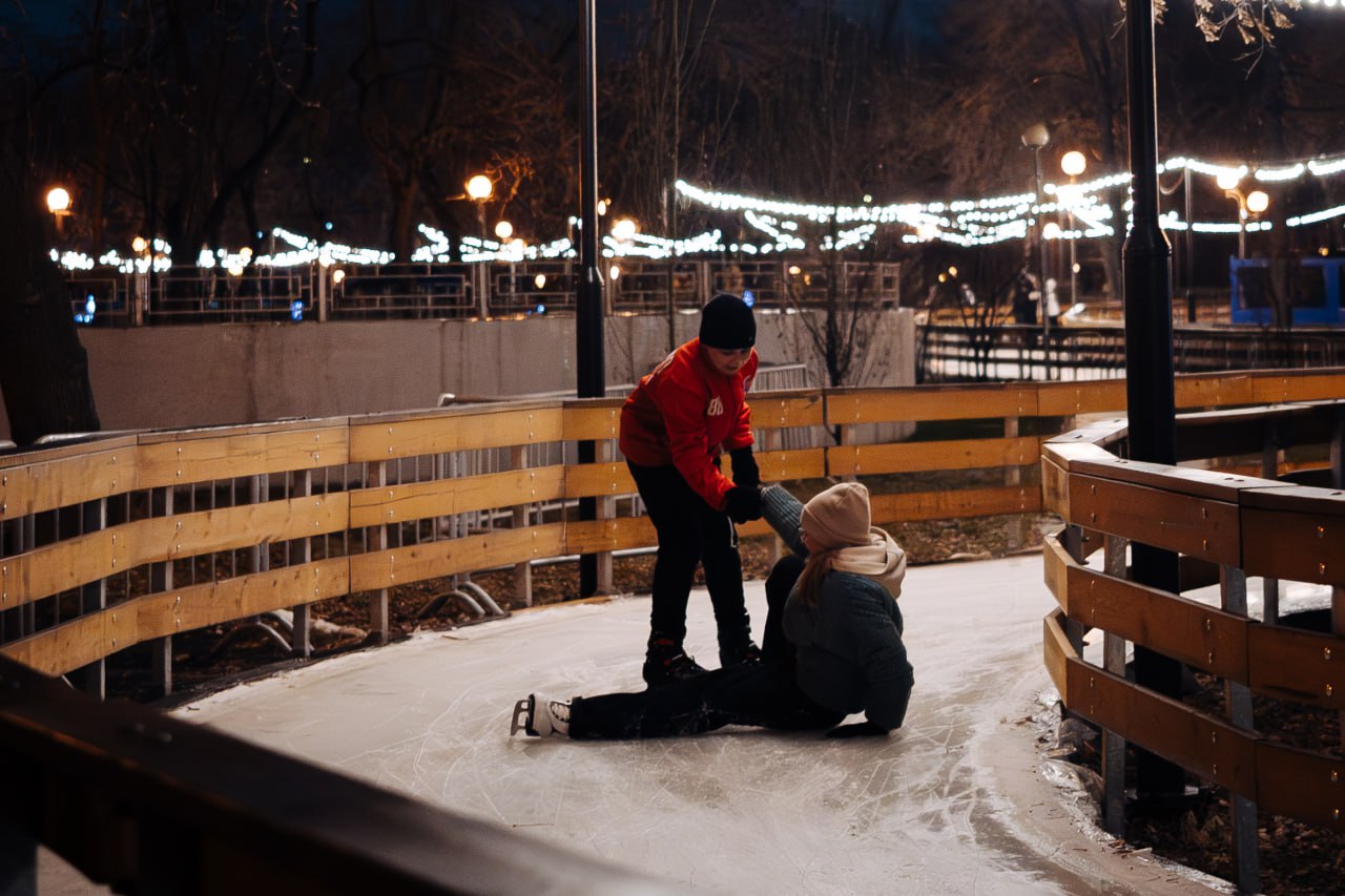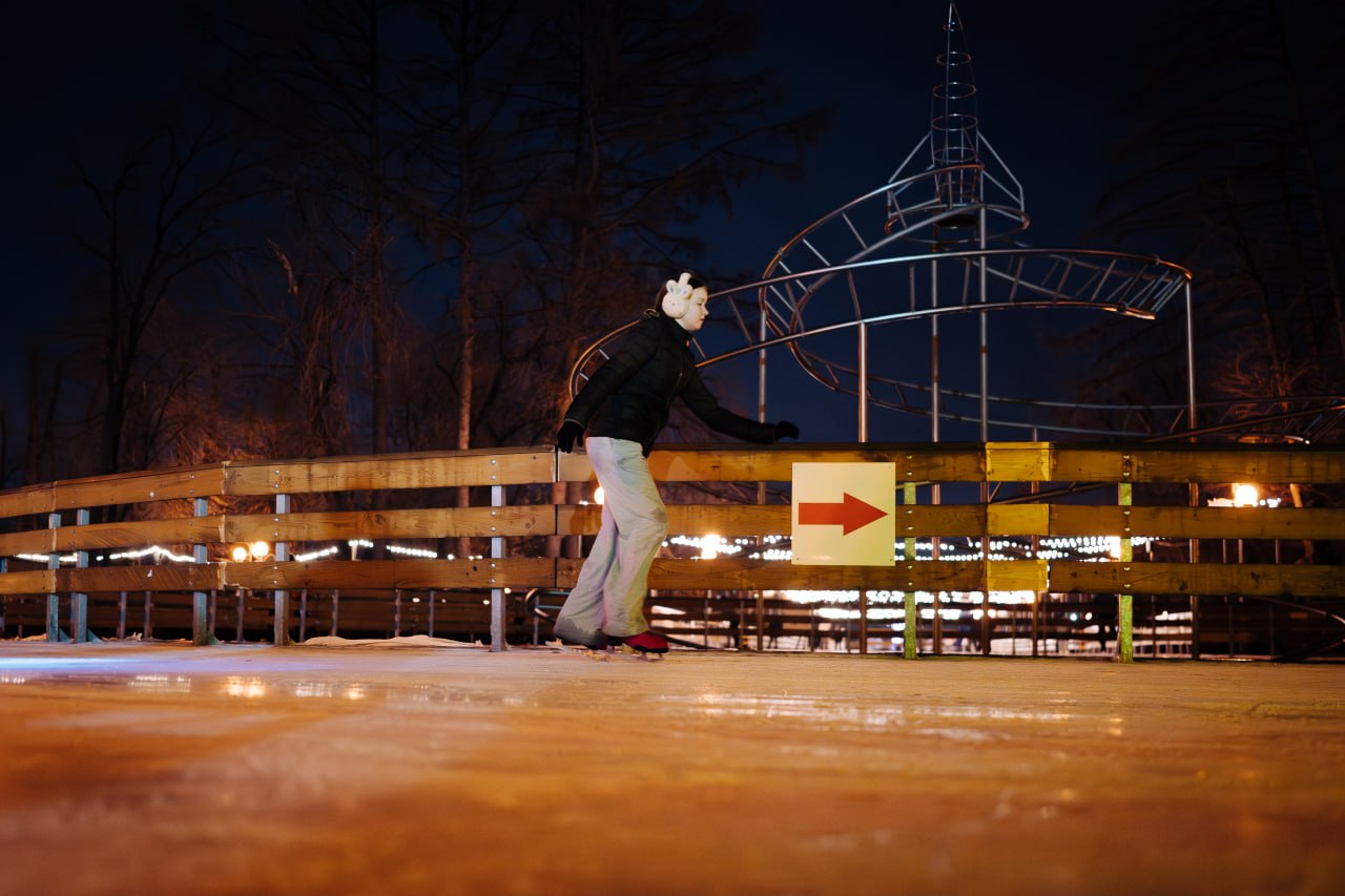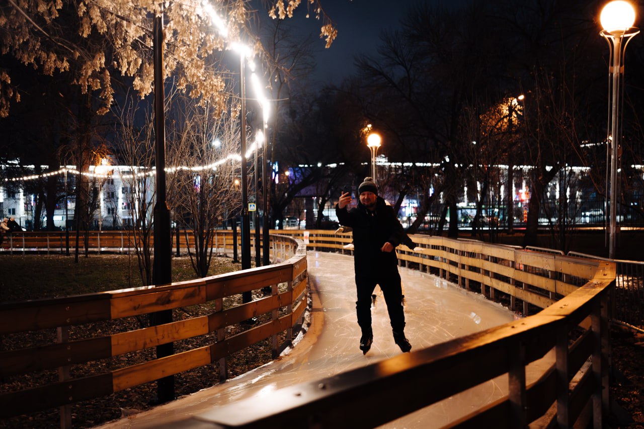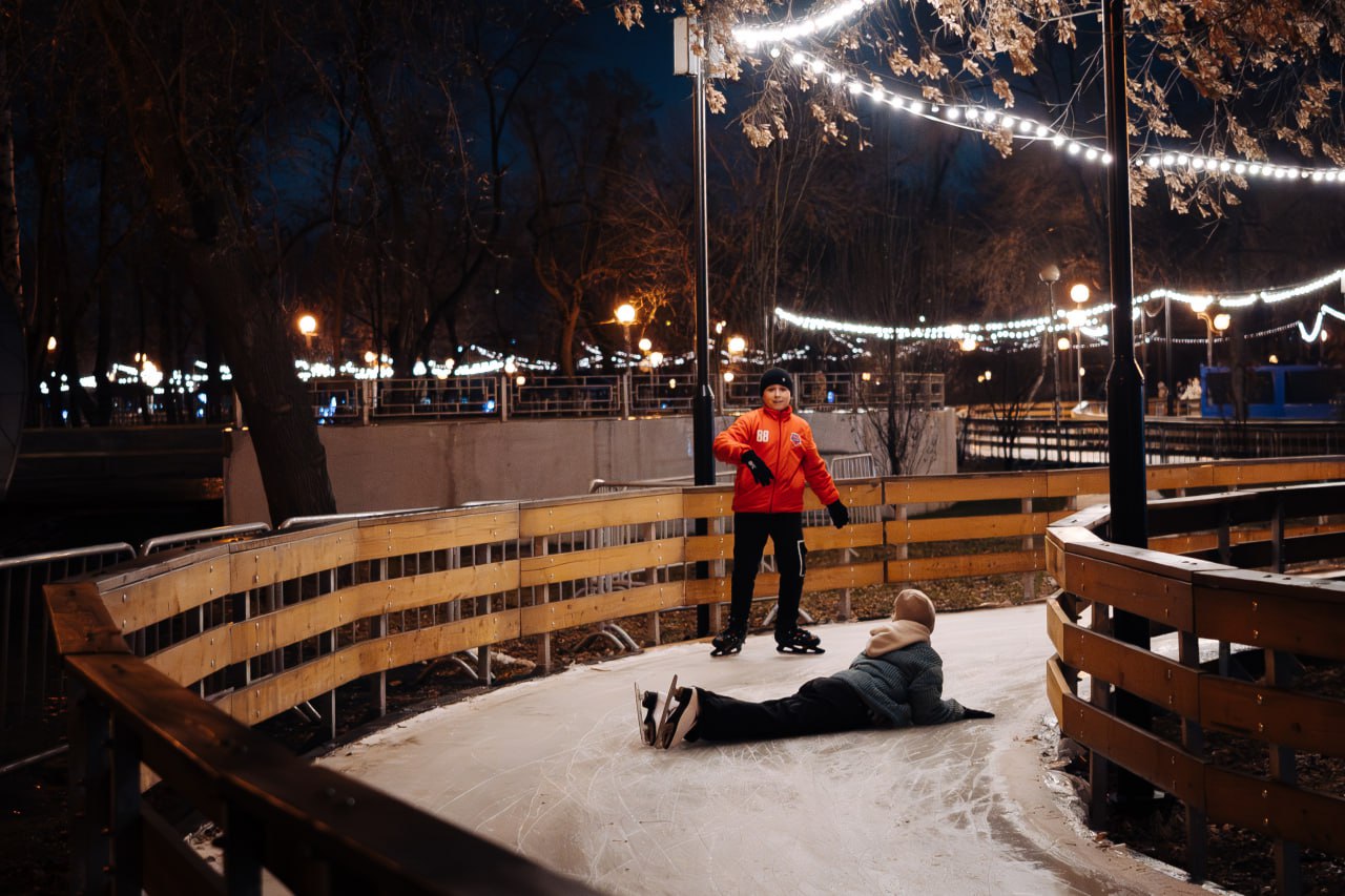 В коньках под дождем: каток в парке Терешковой начал работать под открытым небом, несмотря на потепление. Смотрим, как это было