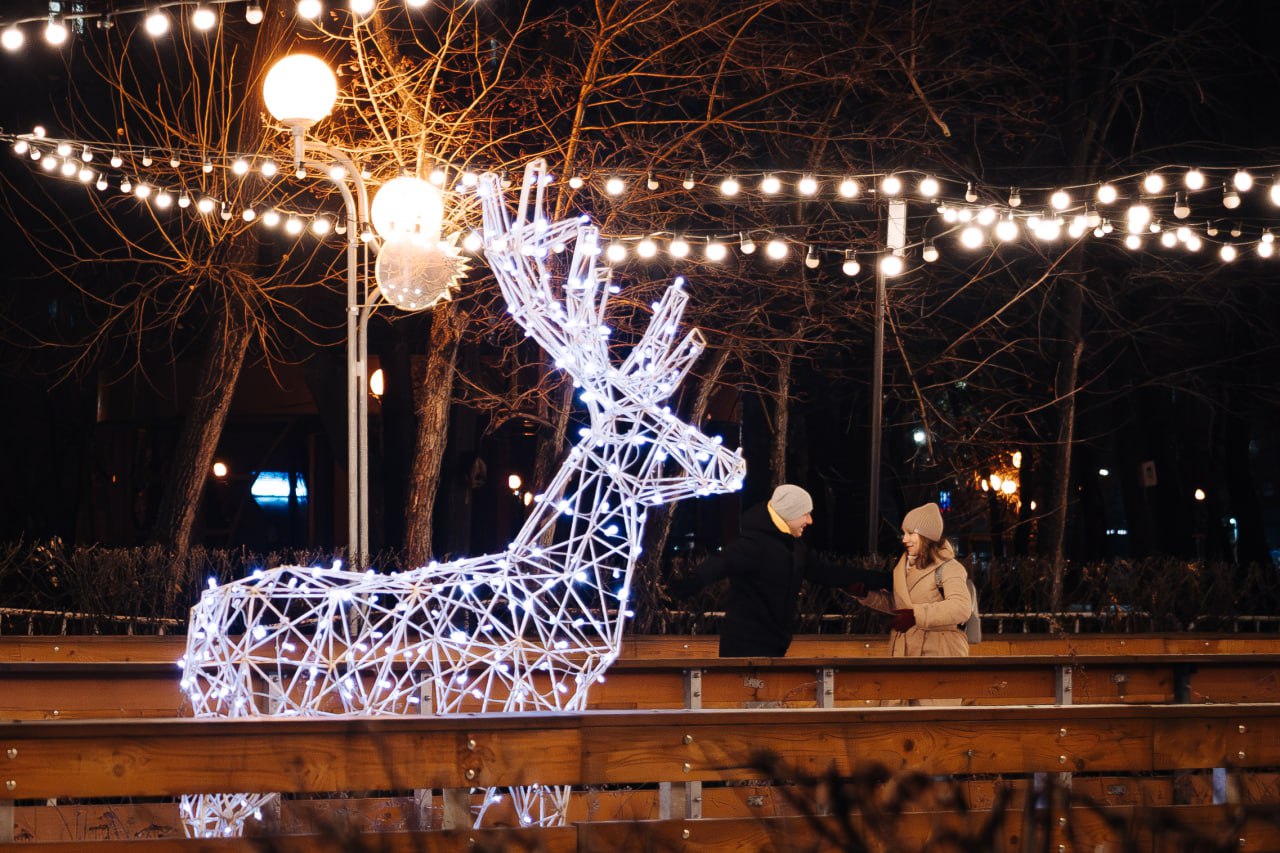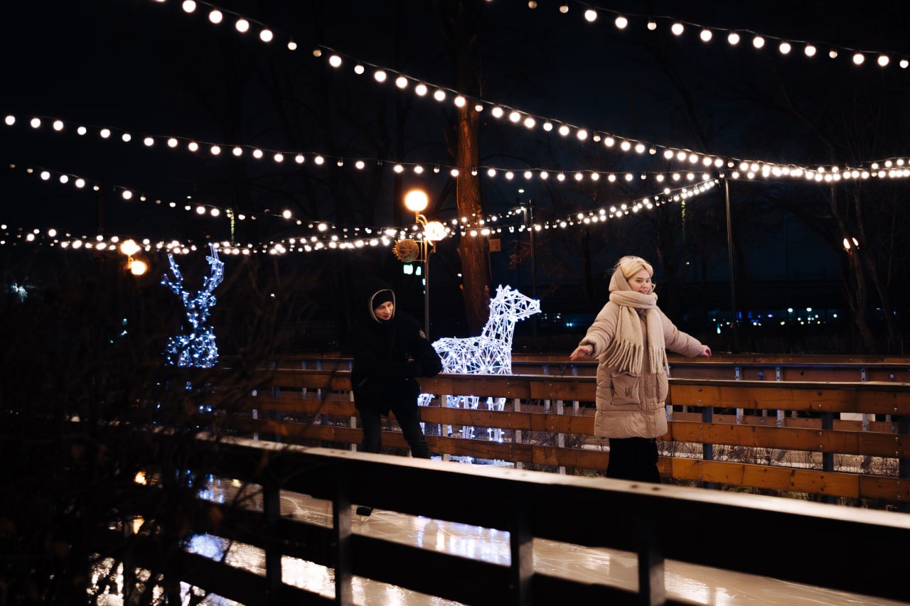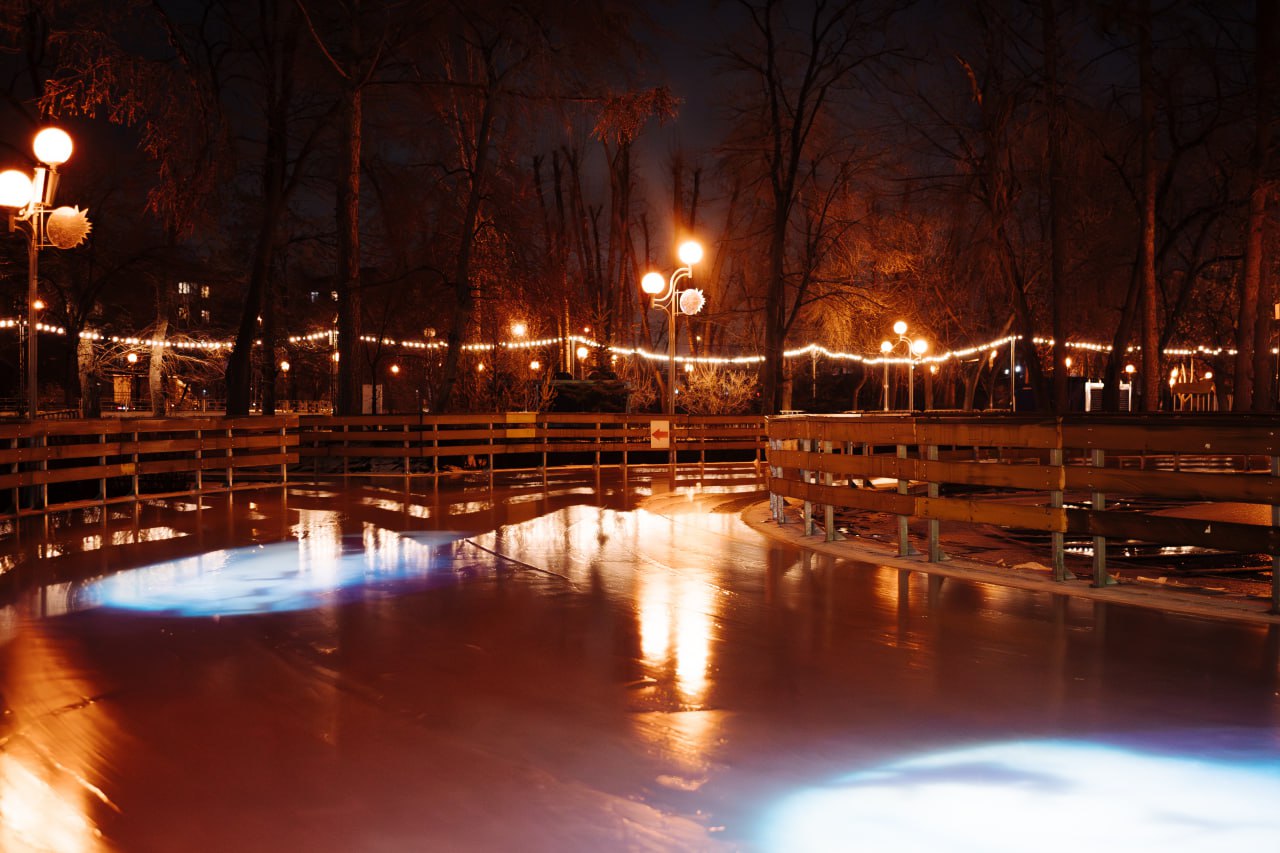В Челябинске уже пришла пора доставать коньки – и даже не из-за ледяного дождя и гололеда. В парке Терешковой открылся каток под открытым небом. Аллеи залили искусственным льдом и установили новогодние светящиеся фигуры.