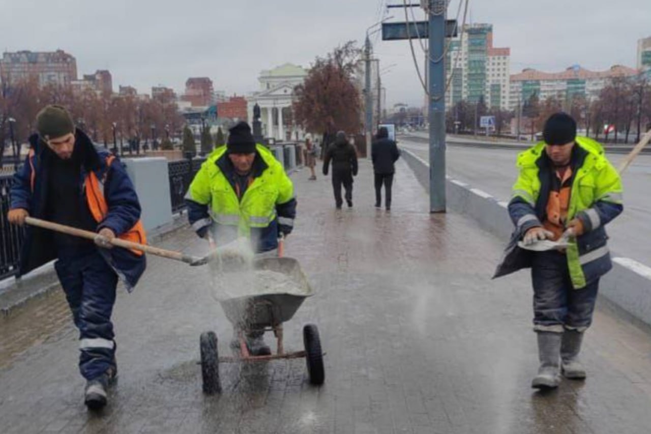 – Опасные места обрабатываются противогололедными материалами. Убирается грязь и ледяная «каша», образовавшаяся после обработки тротуаров и дорог, чтобы снизить обледенение в ночное время, – рассказали в ведомстве.