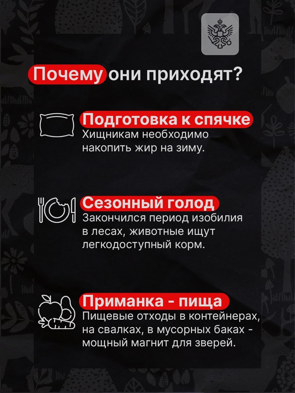Дикие животные всё чаще начинают появляться рядом с людьми. Это тревожный сигнал, ведь такое поведение несёт серьёзные риски как для самих животных, так и для человека.