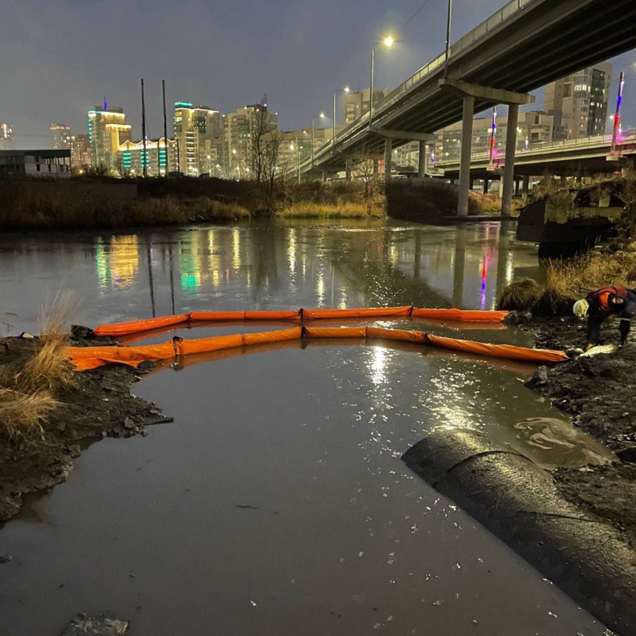 Спасатели работали на реке в районе цирка и около ул. Свободы, где Игуменка впадает в Миасс. Там были установлены заградительные боны и собраны нефтепродукты сорбентами.