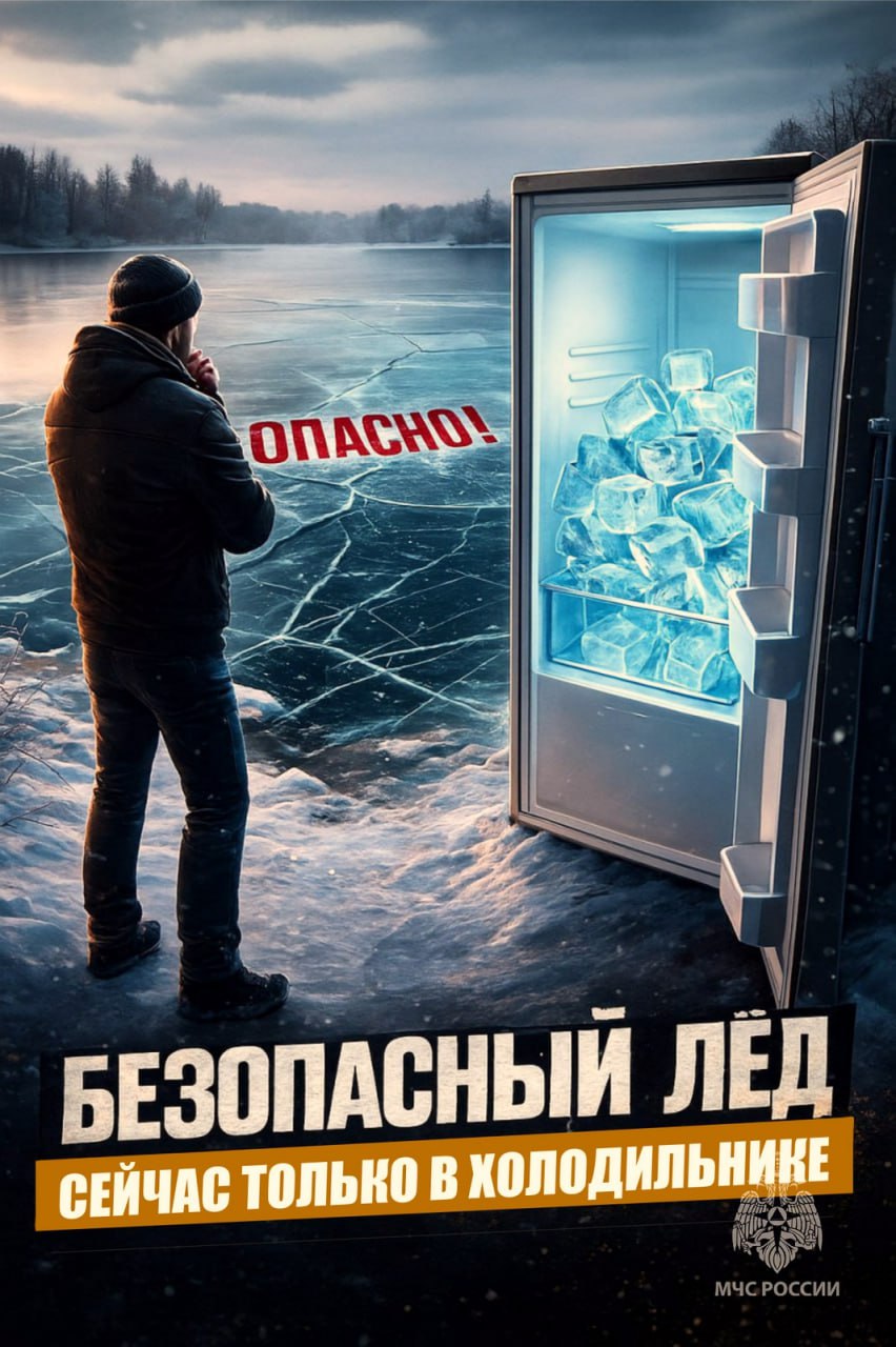 МЧС России напоминает: выход на лед опасен для всех, особенно для детей - не оставляй их без присмотра!