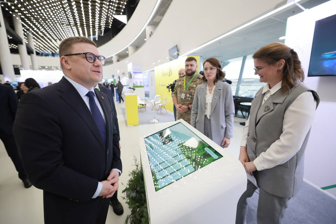 Губернатор Алексей Текслер осмотрел стенд Челябинска, который представил мэр города Алексей Лошкин. Экспозиция показывает развитие города, ключевые культурные и спортивные объекты, обновление транспорта и внедрение цифровых сервисов.