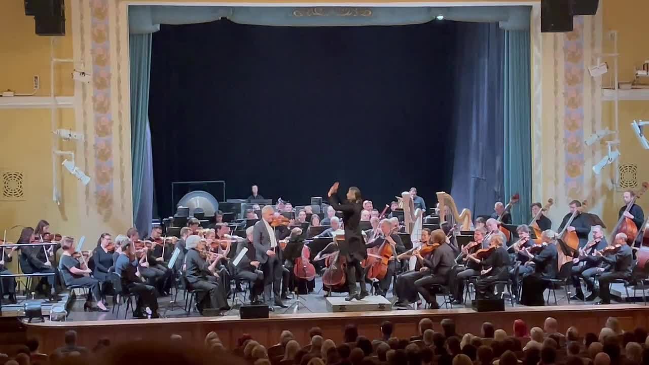 Скрипач Вадим Репин на инструменте XVII века вместе с Государственным симфоническим оркестром имени Светланова исполняют концерт австрийского композитора-экспрессиониста Альбана Берга.