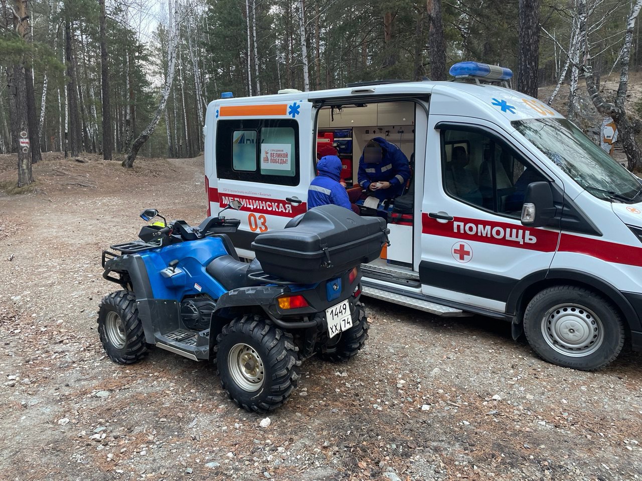 Туристка получила травму ноги, находясь на вершине. Сотрудники Кыштымского поисково-спасательного отряда оказали первую помощь и транспортировали женщину к машине скорой помощи.