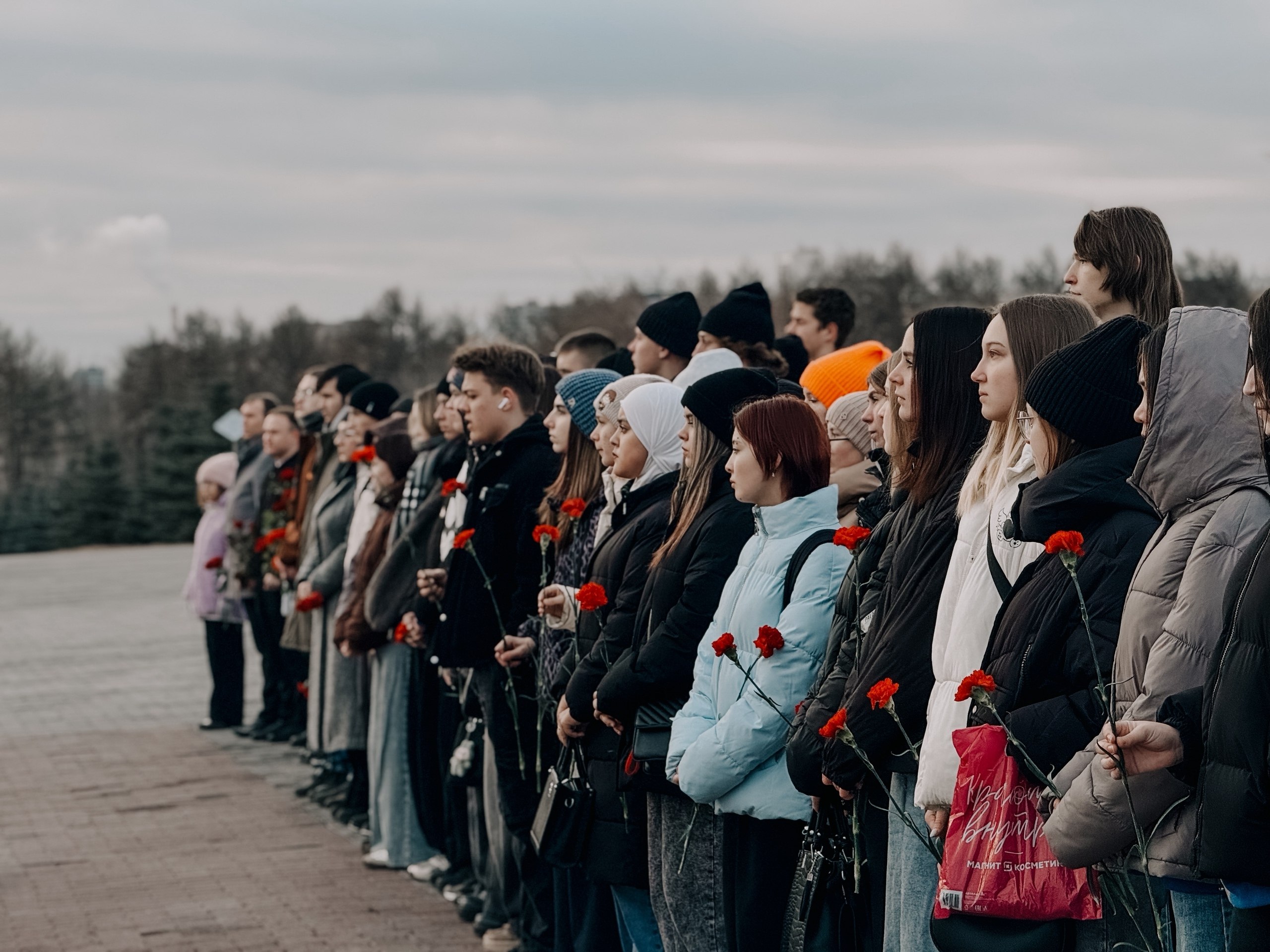 Мероприятие завершилось возложением цветов под музыку. Затем делегация направилась на Левобережное кладбище, чтобы почтить память погибших у братских могил.