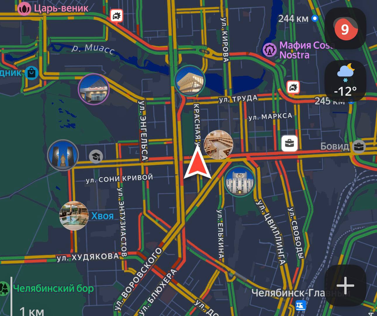 Вечерние пробки в Челябинске уже достигли отметки в 9 баллов