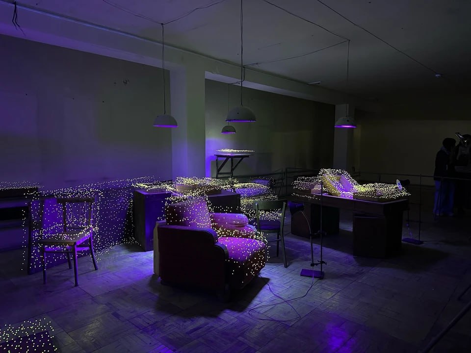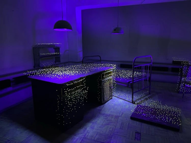 В Миассе ожили легенды о закрытых лабораториях. В музее Ильменского заповедника показывают арт-инсталляцию «Биостанция» — художник Сергей Деникин обыграл старую мебель ученых 15 тысячами светящихся пуль. В полумраке мерцающие шарики висят над столами, будто кто-то только что поднял в воздух радиоактивный рой.
