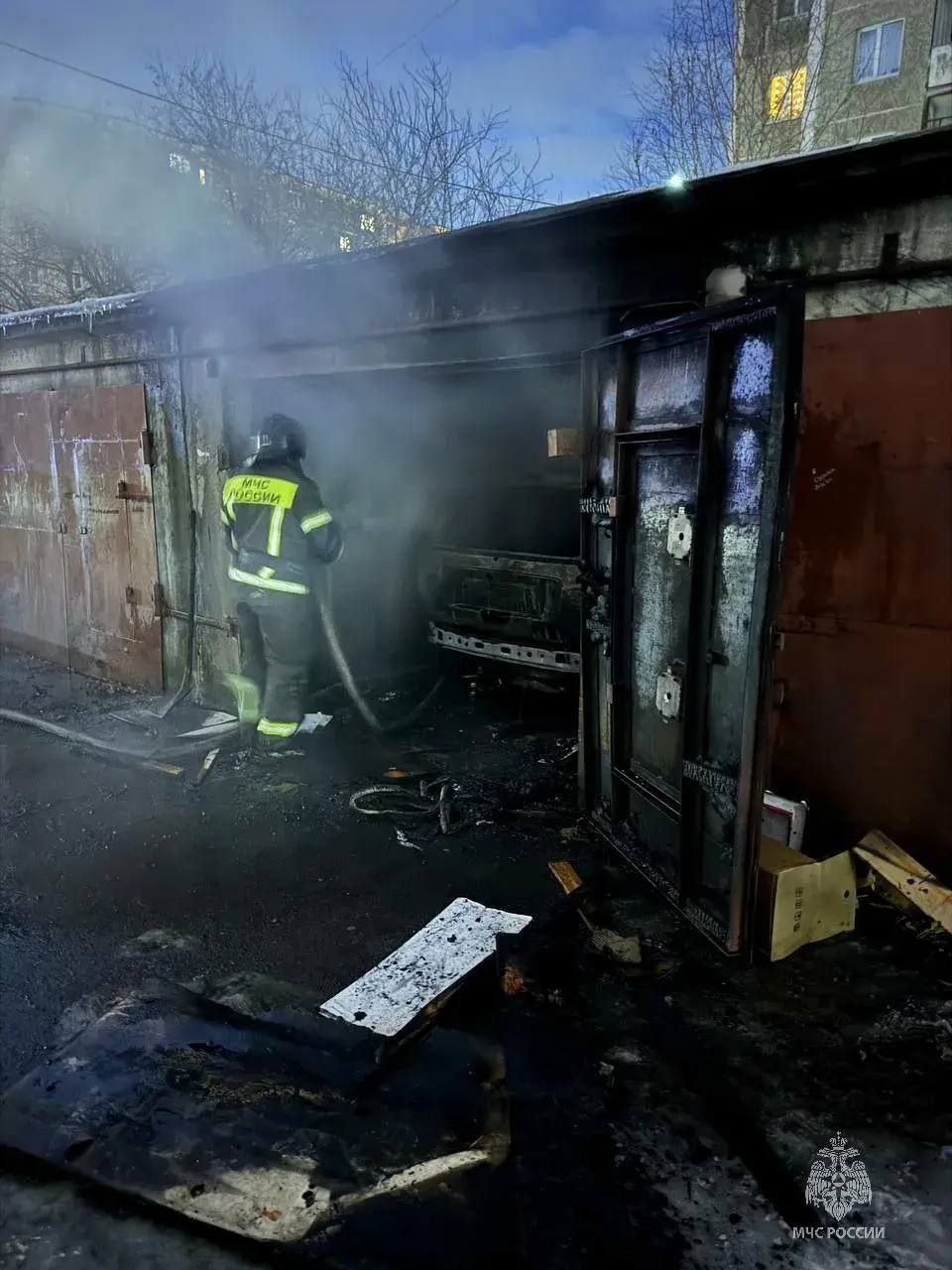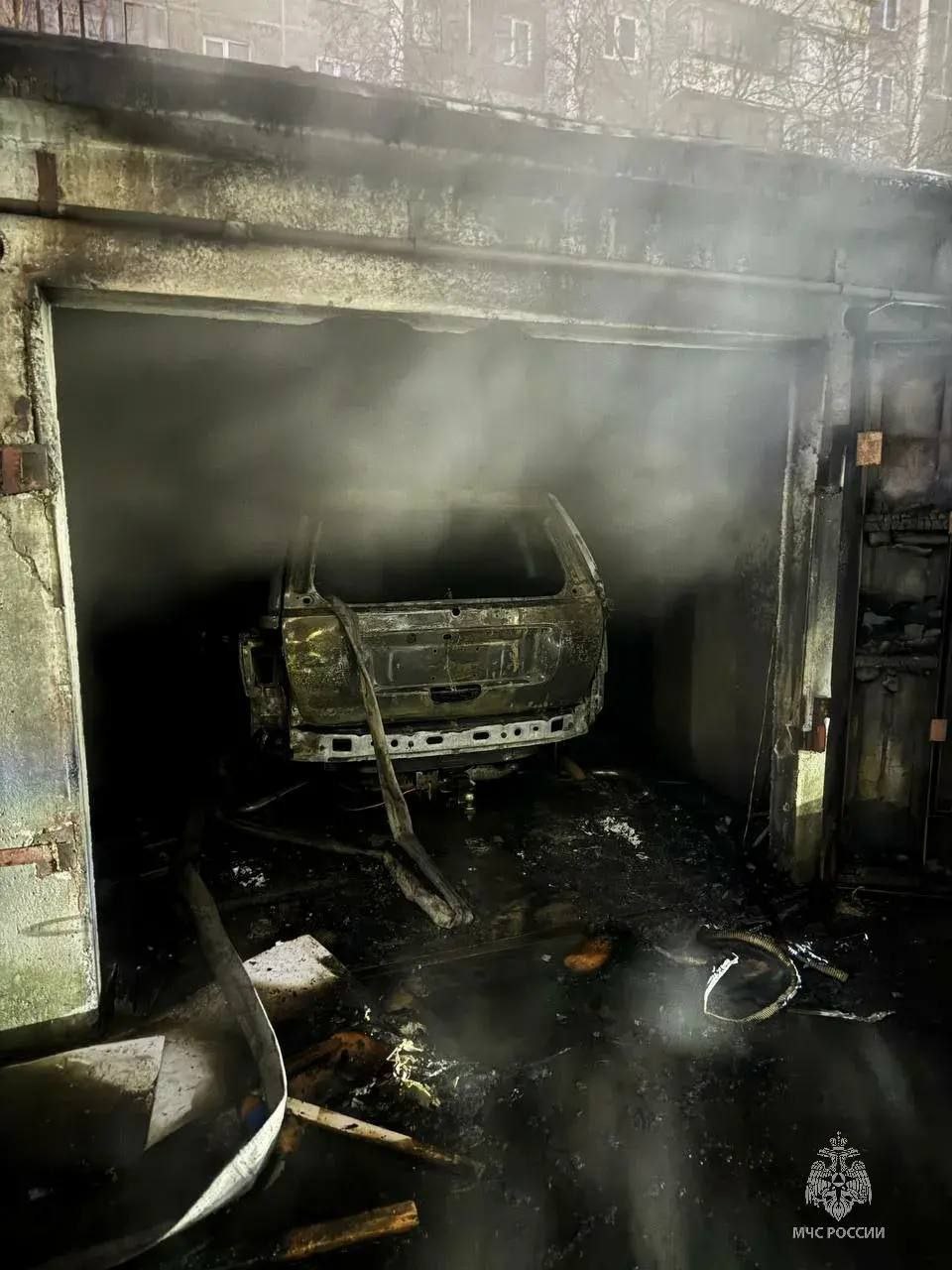ЧП произошло из-за вспыхнувшего автомобиля. Сотрудники МЧС успели вовремя. Огонь не перекинулся на соседние гаражи.