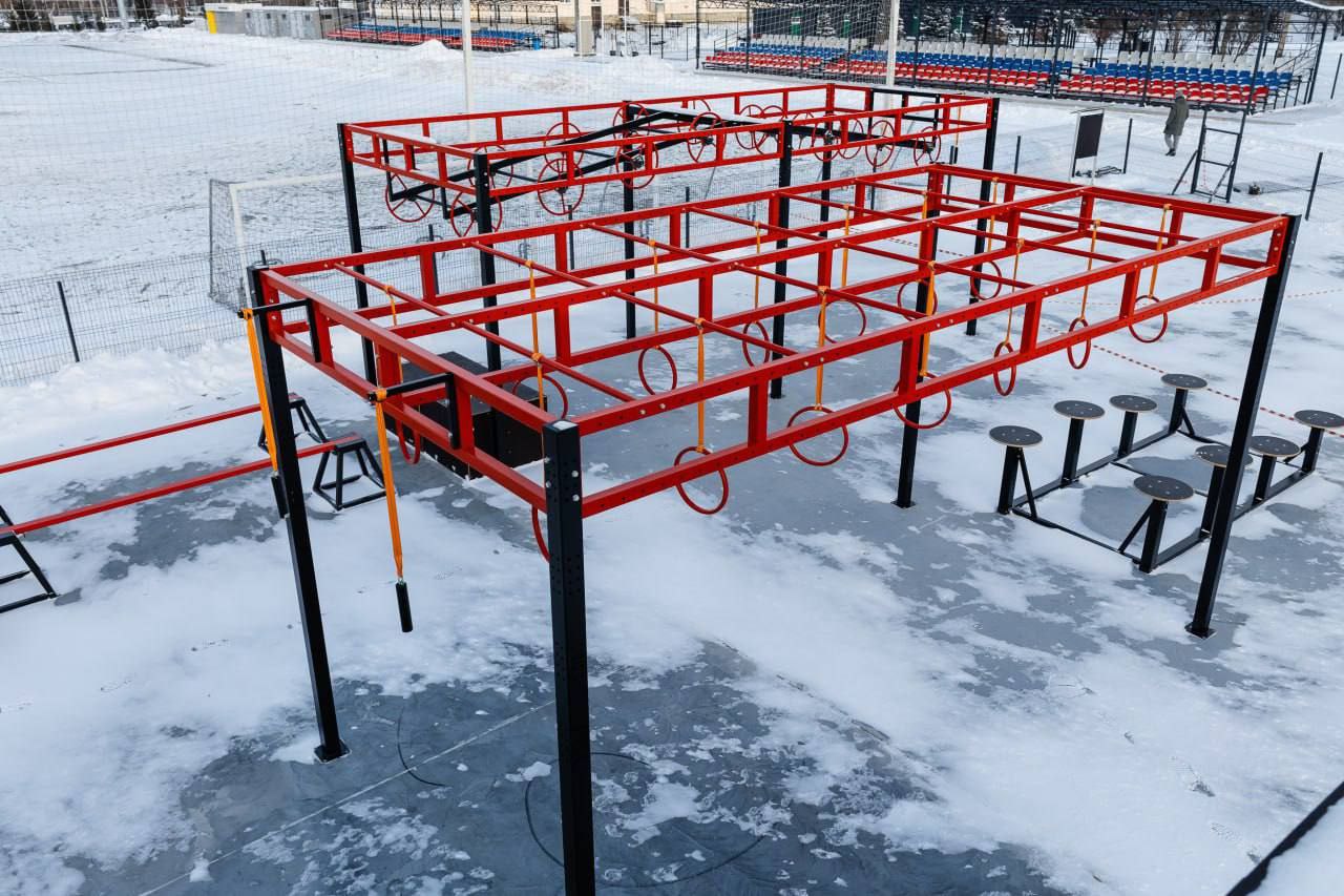 Трассу длиной 100 метров создали на стадионе им. Колющенко. Площадка застелена травмобезопасными матами. Препятствия различной сложности: наклонные платформы, рукоходы, вертикальный забор, горизонтальная сетка, канаты, рампа и баланс.