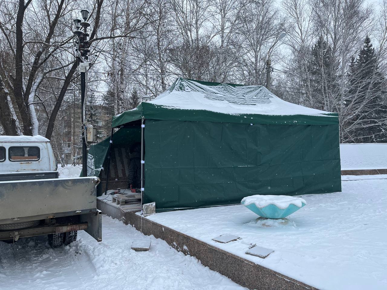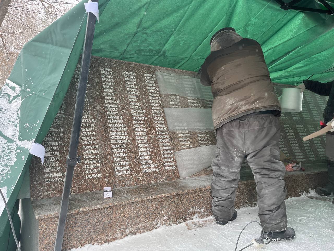 19 декабря подрядная организация приступила к монтажу гранитных плит, на которых уже нанесены фамилии героев, павших в годы Великой Отечественной войны.