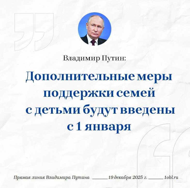 Всё должно выстраиваться вокруг семьи. Дополнительные меры вводятся с 1 января.