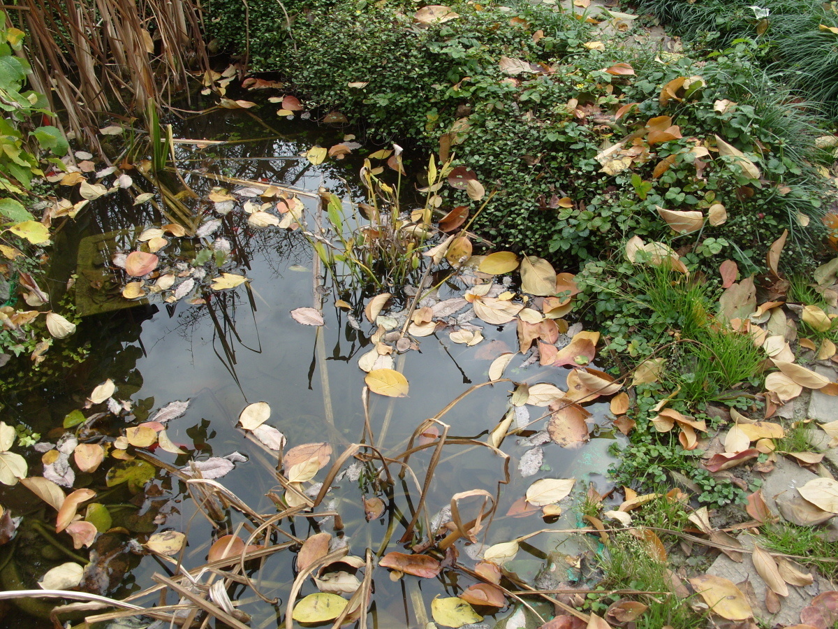 Перед началом зимы важно позаботиться о водных растениях, оставляющихся зимовать в водоеме. Например, у аира болотного следует срезать листья, оставляя не больше десяти сантиметров над водой, а у белокрыльника обрезают все листья под корень. Ирисы аировидные требуют обрезки еще в начале осени, когда их кончики начинают краснеть. Для рогозов и тростников листья обычно оставляют, чтобы обеспечить защиту полынь. Если же растение находится в контейнере, то его нужно закрепить камнями, чтобы оно не всплыло.