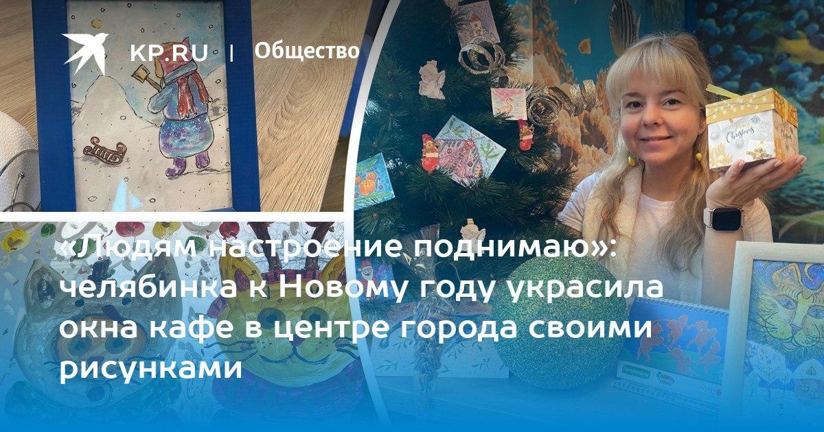 «Людям настроение поднимаю»: челябинка к Новому году украсила окна кафе в центре города своими рисунками