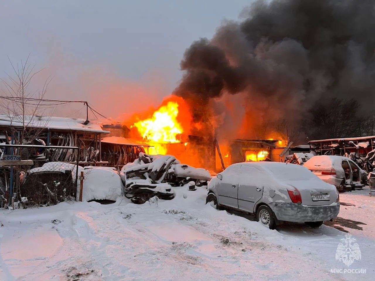 На улице Новороссийской в Челябинске вспыхнул автосервис