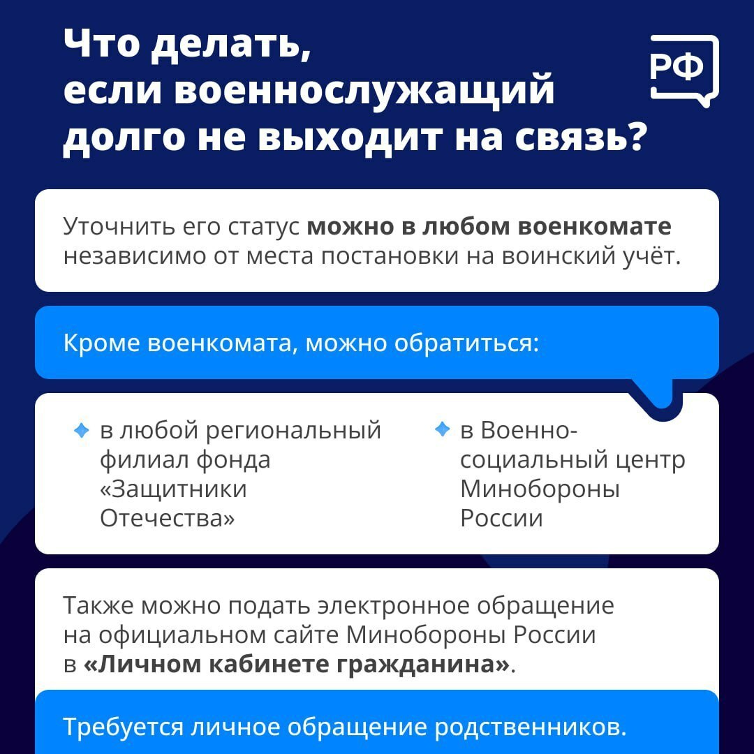 Куда можно обращаться родным военнослужащих, которые долго не выходят на связь, рассказываем в карточках.