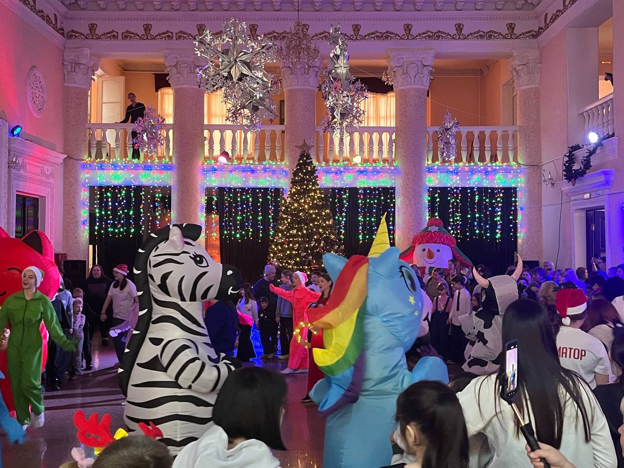 Программа праздника началась с традиционного хоровода возле елки, после чего гости погрузились в праздничную атмосферу основной программы «Тайна новогодних часов».
