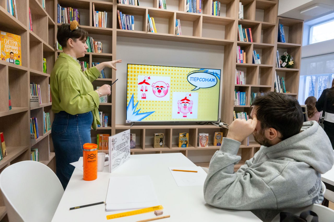 А «гвоздём вечера» стал хакатон, который провела специалист Анна Кузнецова. Гости всех возрастов старались придумать собственного смешарика, а потом создать о нём цельную историю, которая превращалась в комикс.