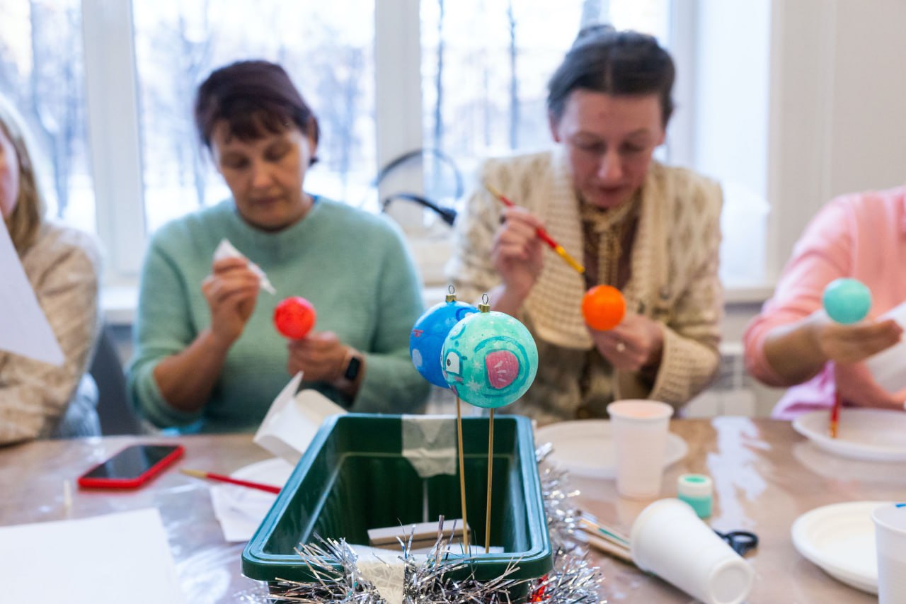 В ходе мастер-класса по созданию ёлочных игрушек каждый смог проявить свою смекалку и превратить самый заурядный пенопластовый шар в своего любимого героя из мультсериала «Смешарики».