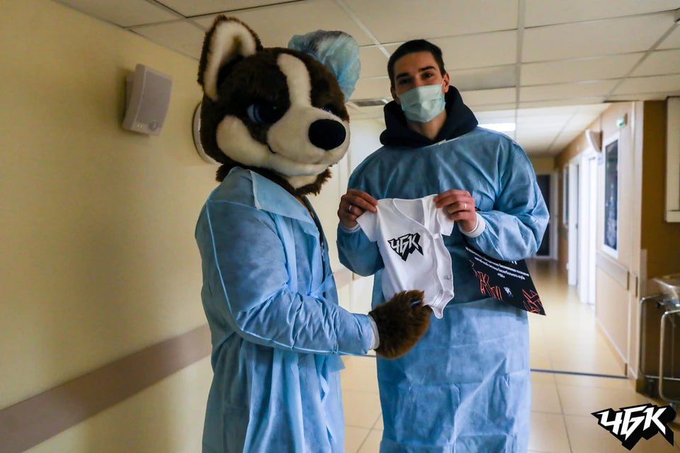 Поздравить мам и новорожденных в перинатальный центр приехали представители Федерации баскетбола Челябинской области, а также форвард «ЧБК» Павел Морозов и маскот клуба Леброша.