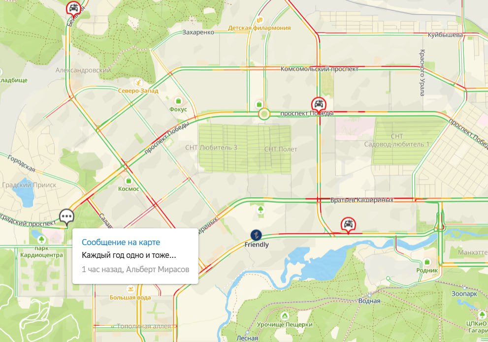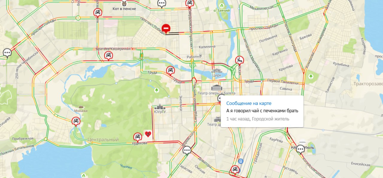 Челябинск на онлайн-картах пестрит красными огнями и иконками «авария». И кажется, что в пробках практически все улицы. Мы бы посоветовали объехать проспект Ленина, Труда, Худякова, Меридиан, Братьев Кашириных и Свердловский проспект, но как их объедешь… Летающих машин для этого у нас еще нет.