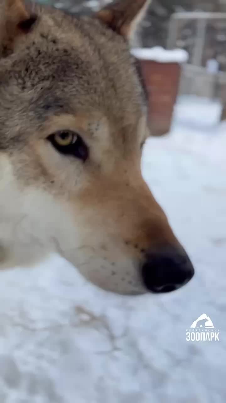 Волк Мухтар из челябинского зоопарка обожает игры со снегом