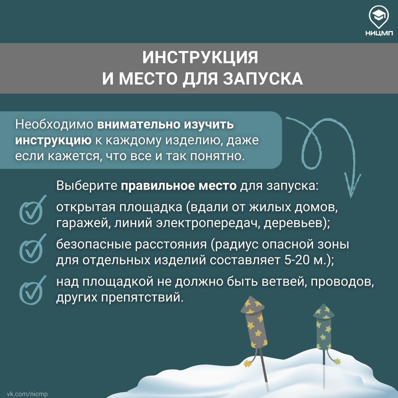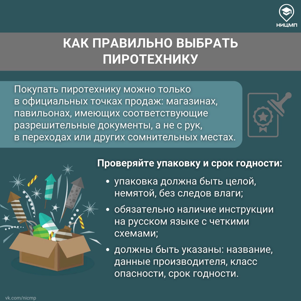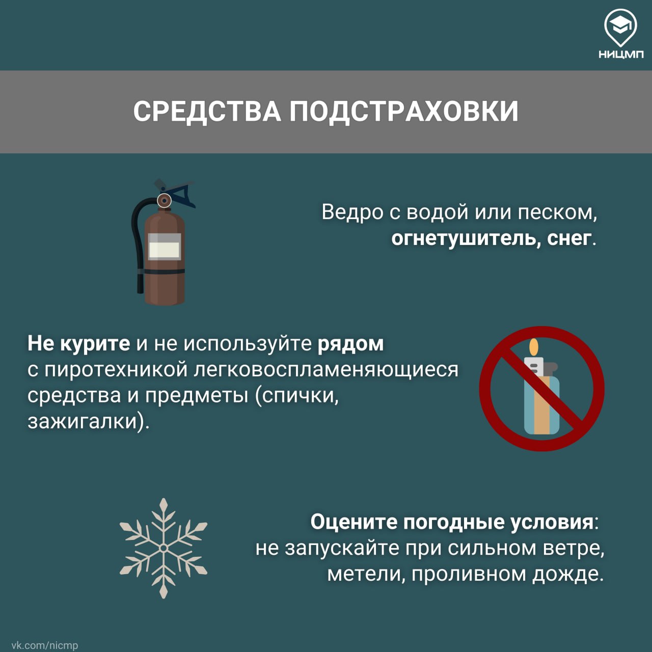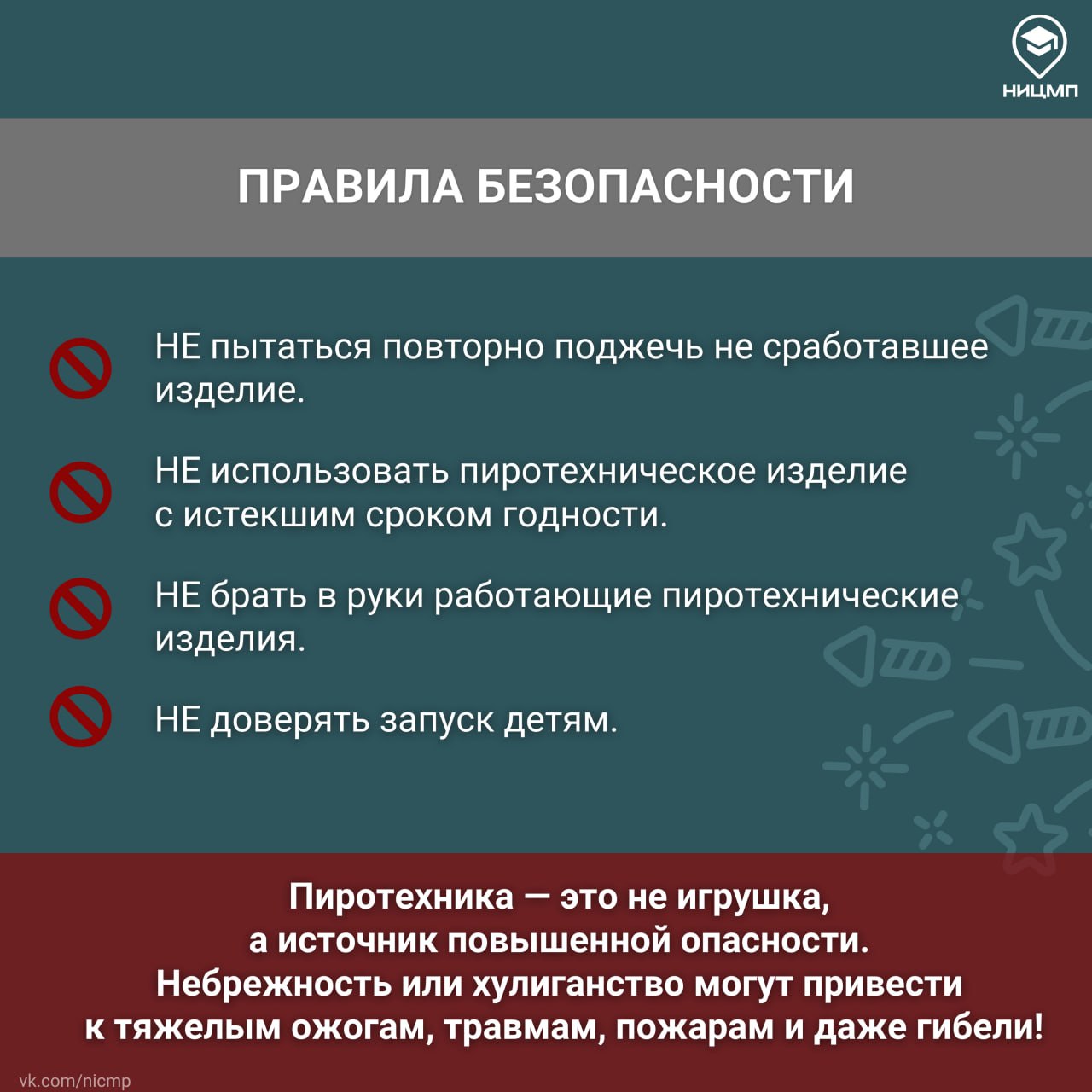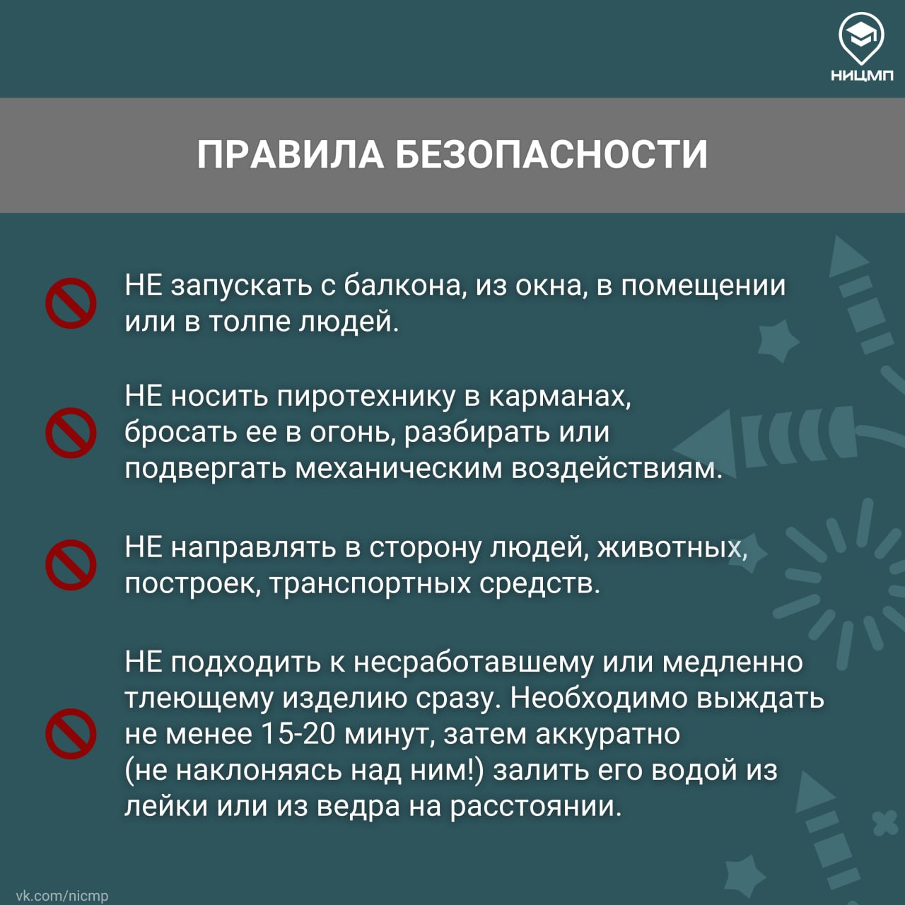 В карточках НИЦ Мониторинга и профилактики собраны основные правила безопасного использования пиротехнических изделий: