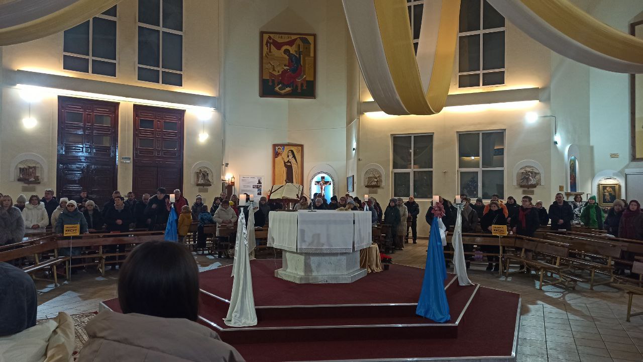 Праздничные службы в храме проходят несколько дней подряд: часть верующих приходит 24 декабря, другие — на рождественские мессы 25 декабря. Для общины это время радостного ожидания, встреч и особого уюта, который создают свечи, вертеп и живая музыка.