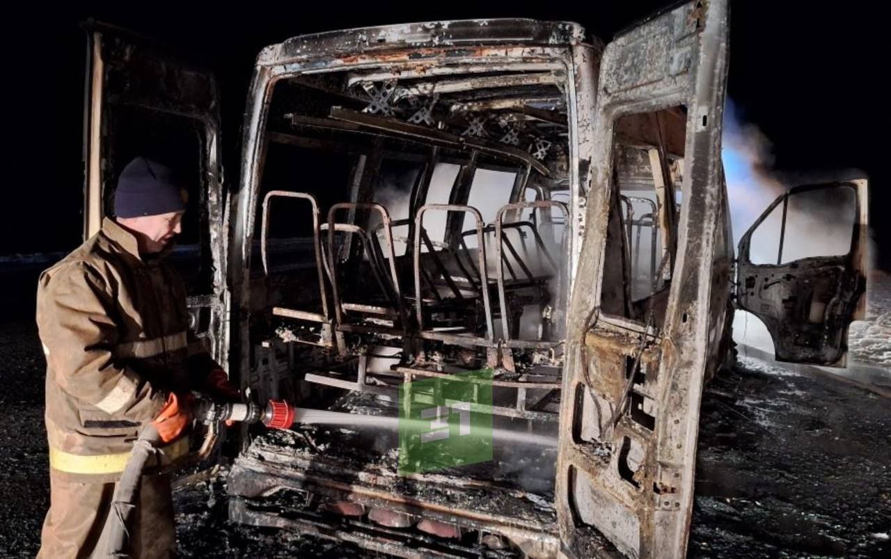 Маршрутка ехала ночью из Магнитогорска в Челябинск. Во время движения вспыхнули моторный отсек и салон. Водитель сразу остановился, шестеро пассажиров успели выбежать. Пострадавших нет. Пассажиров отправили на другом автобусе.