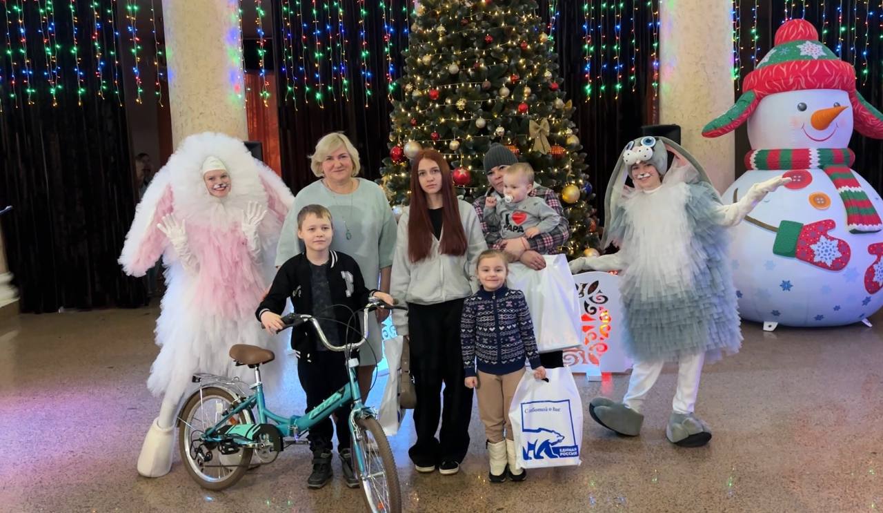 Глава города подарила велосипед юному Мите и сертификат на песочницу от заместителя Губернатора Романа Воллерта девочке Таисии.