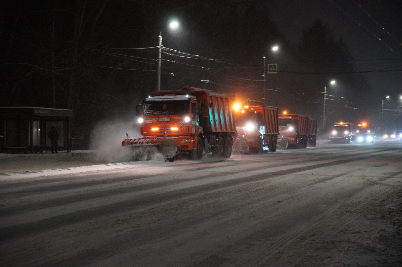 В ночную смену на улицах города трудились 211 машин и бригада из 179 человек. Специалисты сосредоточены на очистке проезжей части, тротуаров, остановочных площадок и прилотковой зоны.
