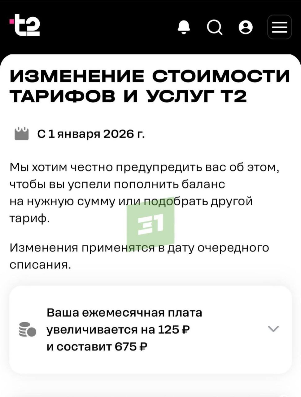 Цены на тарифы поднимутся в январе. Такие уведомления пришли нашим подписчикам в sms и приложении. Один из вариантов: увеличение на 22,73% – с 550 до 675 рублей в месяц.