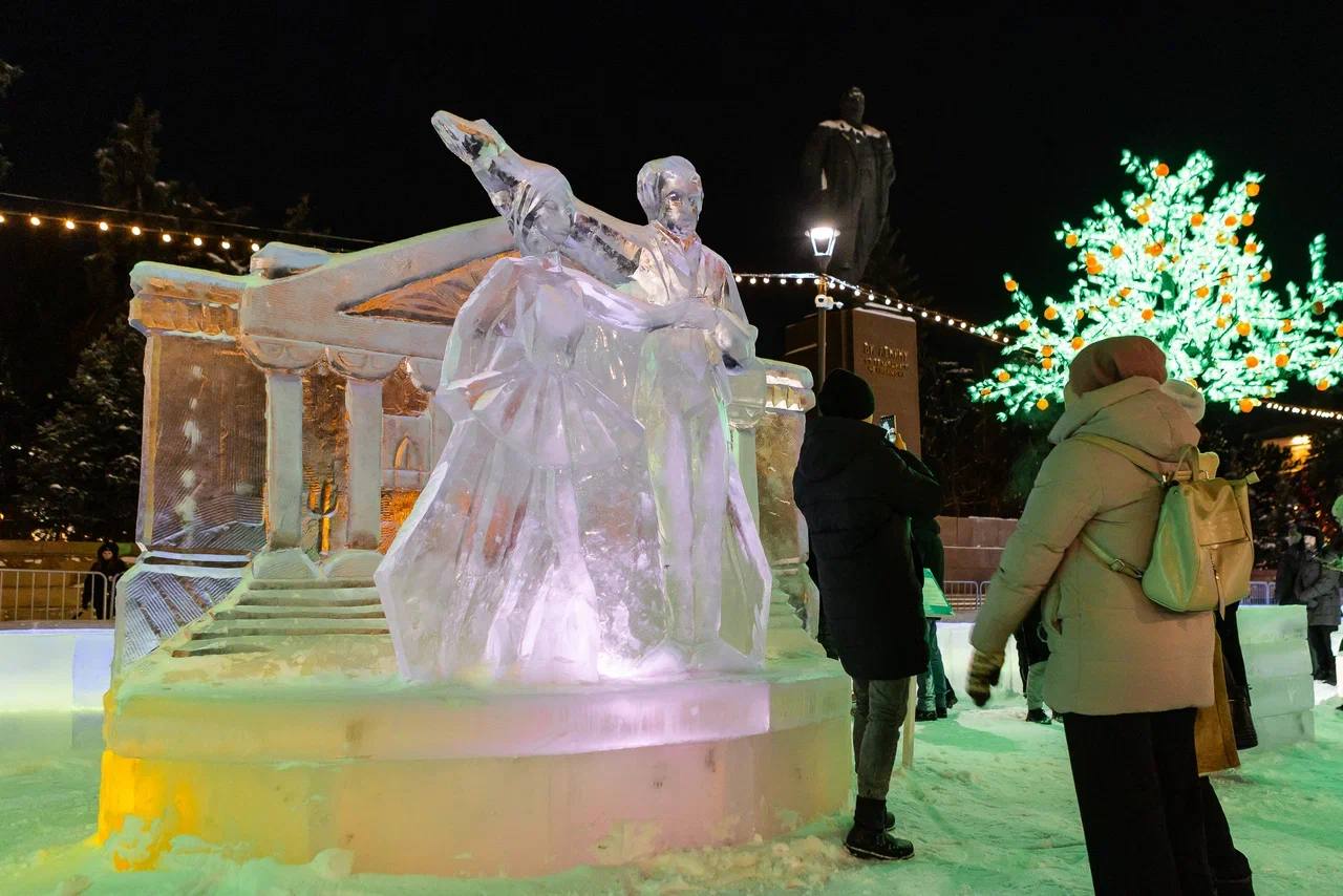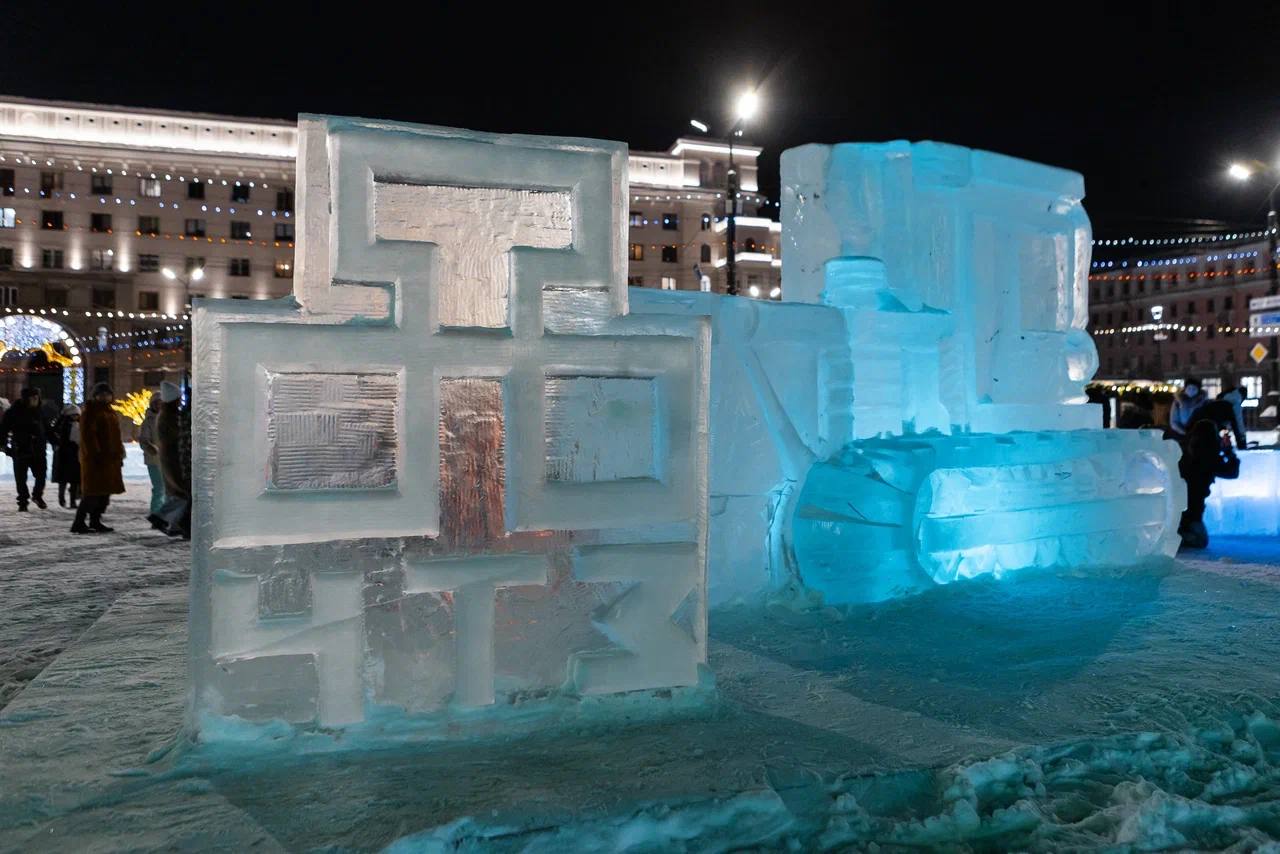 На аллее городка скульпторы возвели изо льда 18 узнаваемых символов Челябинска. Рядом с каждым размещен QR-код, отсканировав который можно познакомиться с детальной информацией об объекте.