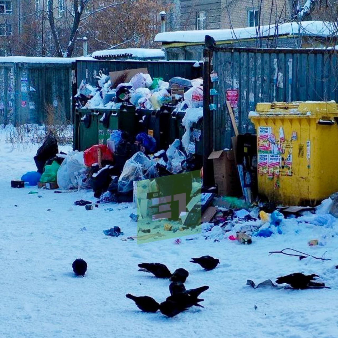 Первые новогодние завалы на контейнерных площадках Челябинска.