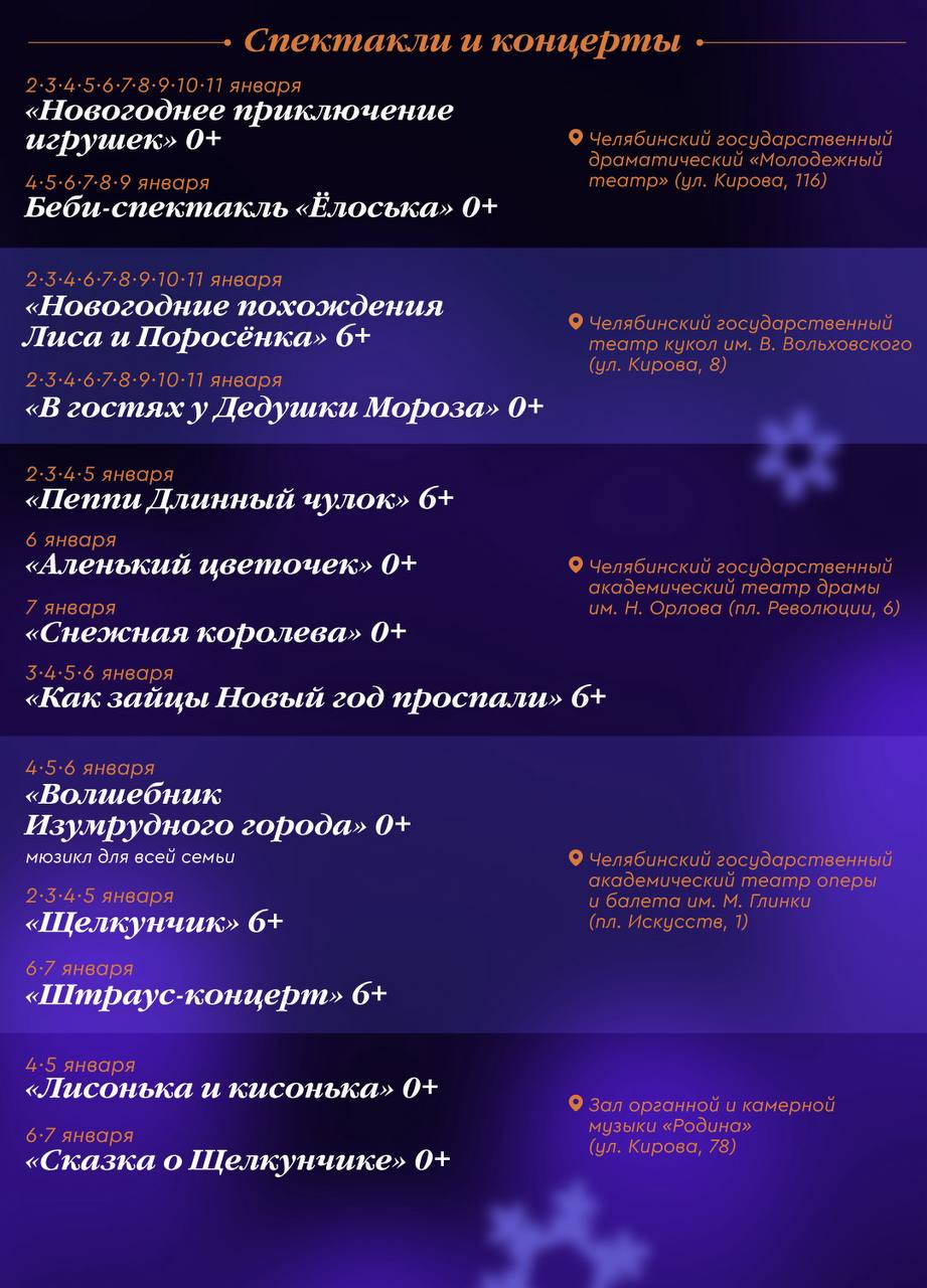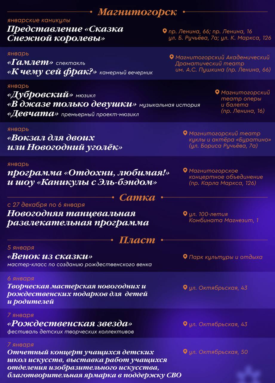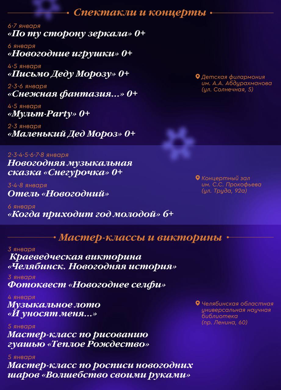 Во 2 по 7 января — спектакли, концерты, мастер-классы, выставки, встречи с Дедушкой Морозом и Снегурочкой в карточках от правительства региона.