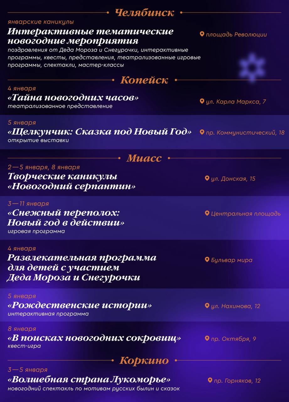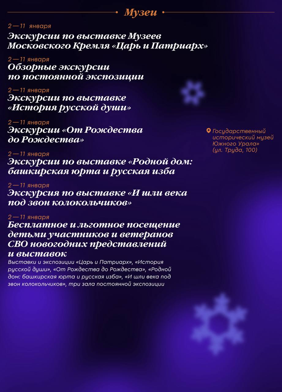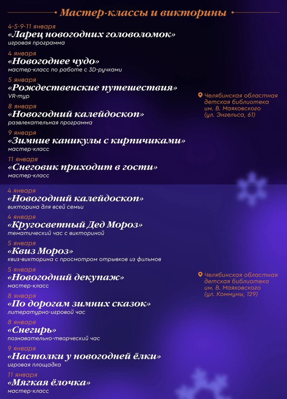 Во 2 по 7 января — спектакли, концерты, мастер-классы, выставки, встречи с Дедушкой Морозом и Снегурочкой в карточках от правительства региона.