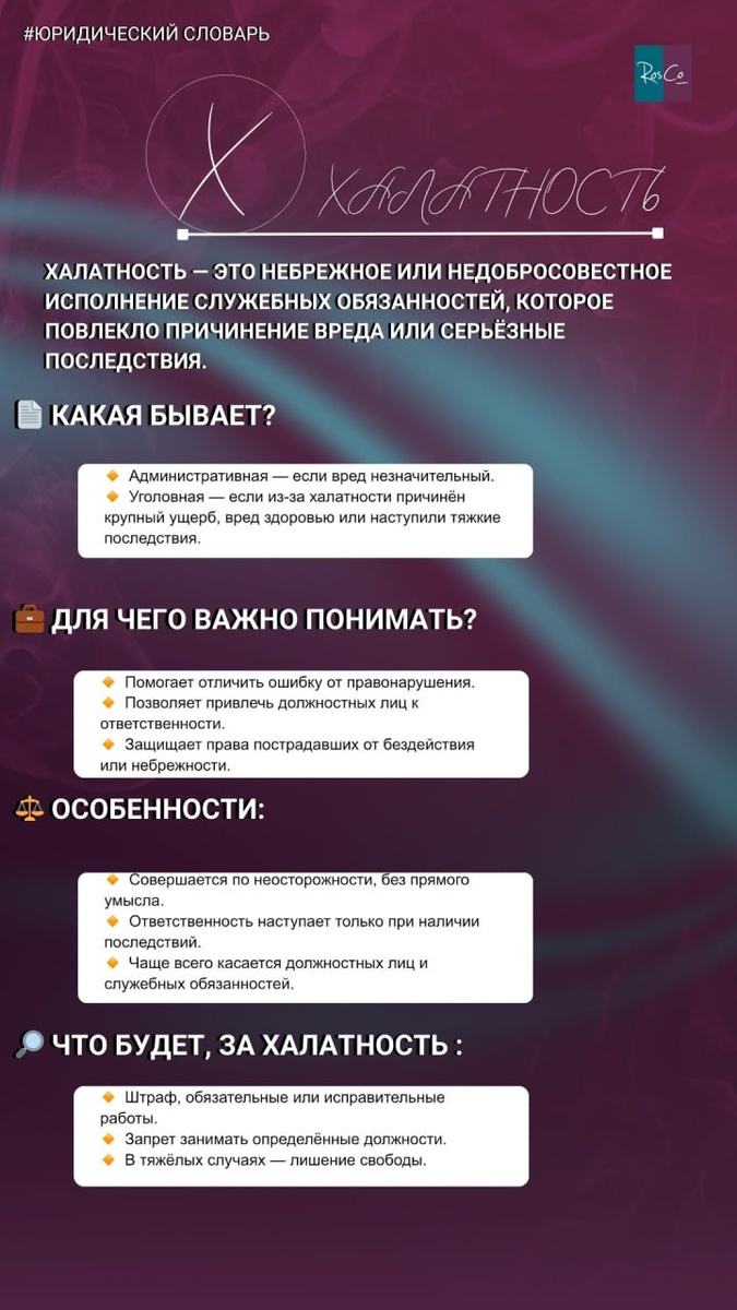 Халатность — это состояние небрежного отношения к исполнению служебных обязанностей, которое может иметь серьёзные негативные последствия. Обычно она характерна для случаев, когда работник не проявляет должной внимательности и заботы, что в итоге приводит к ущербу или другим значительным последствиям, пишет канал "RosCo | Consulting & audit".
