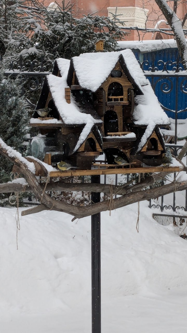 Как из сказки: оригинальная кормушка для птиц украсила территорию монастыря в Челябинске