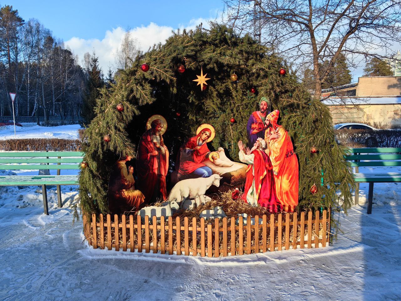 В Снежинске провели уборку в храмах и украсили их хвойными ветвями. А еще сделали композиции в честь Рождества. В храме апостола и евангелиста Иоанна Богослова вертеп появился внутри помещения, а в храме преподобного Сергия Радонежского — снаружи.