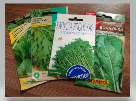 - Капуста японская и горчица мизуна — это фактически одно и то же растение. Оба варианта можно встретить на упаковках семян.