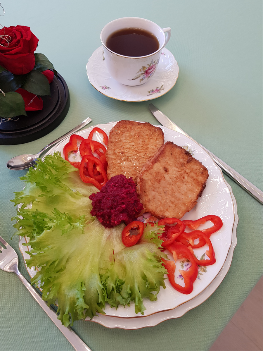 Готовые стейки подаются с ярким салатом из фриллис и сладким перцем «Палермо», а также с оригинальным свекольно-клюквенным соусом для полноты вкуса. Это блюдо станет отличным выбором для вечеринки или семейного ужина — не упустите шанс порадовать близких удивительным кулинарным шедевром!